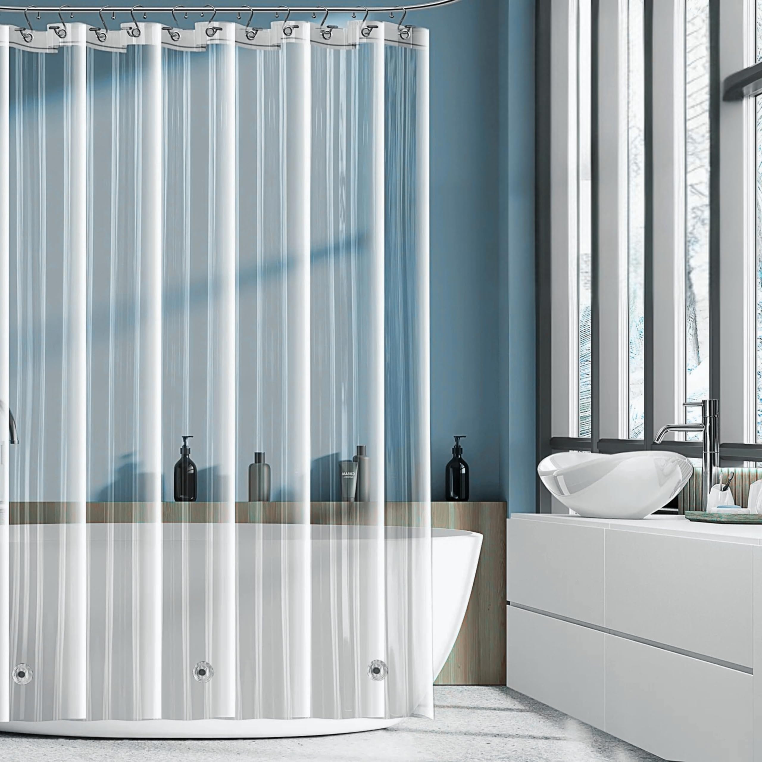 Forro de cortina de ducha con imanes, 72 x 72 pulgadas, PEVA transparente, grosor superior de 70 GSM, se adapta a ducha estándar,
