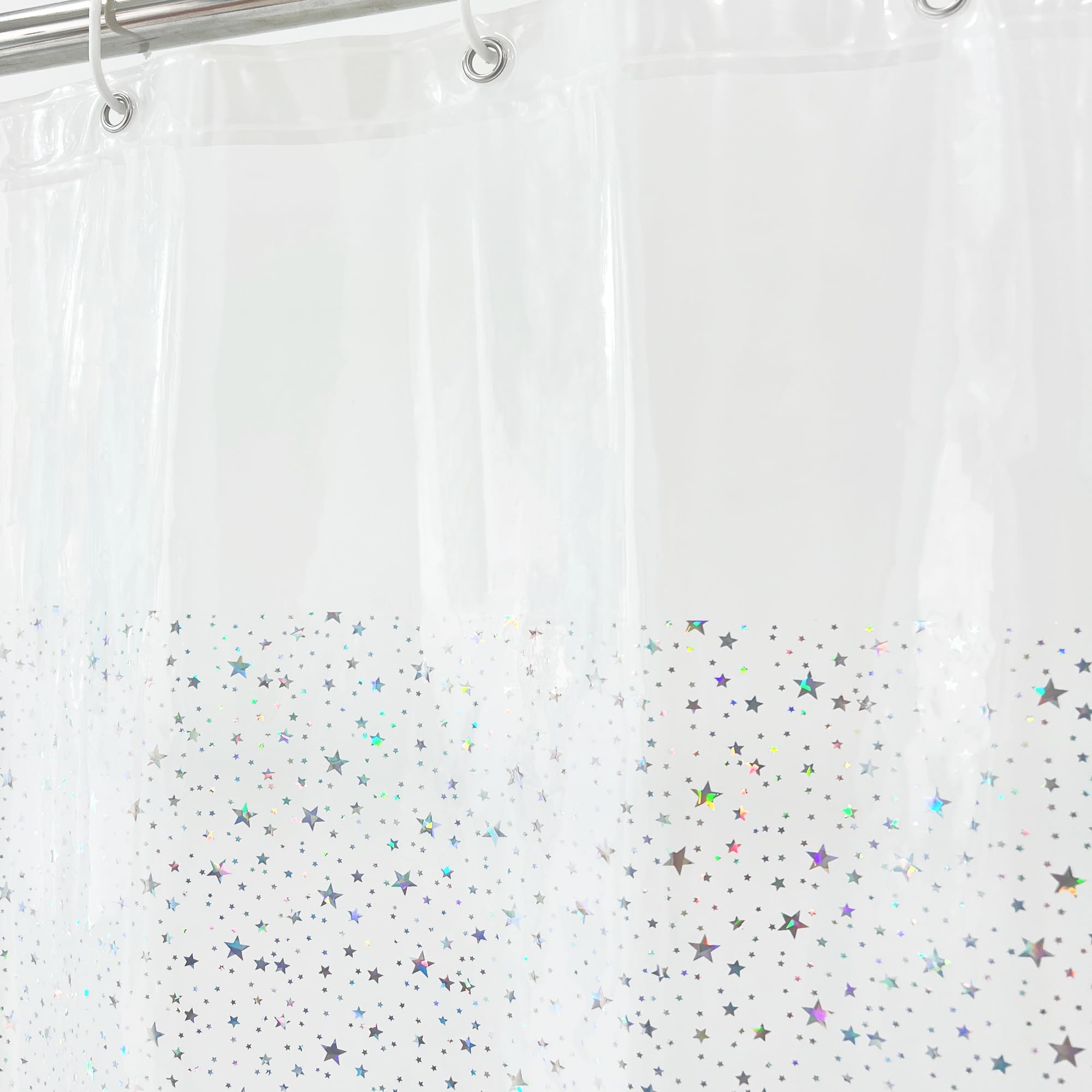 Riyidecor PEVA – Forro fino y transparente para cortina de ducha, imán pesado, estrella holográfica de plástico con purpurina prem