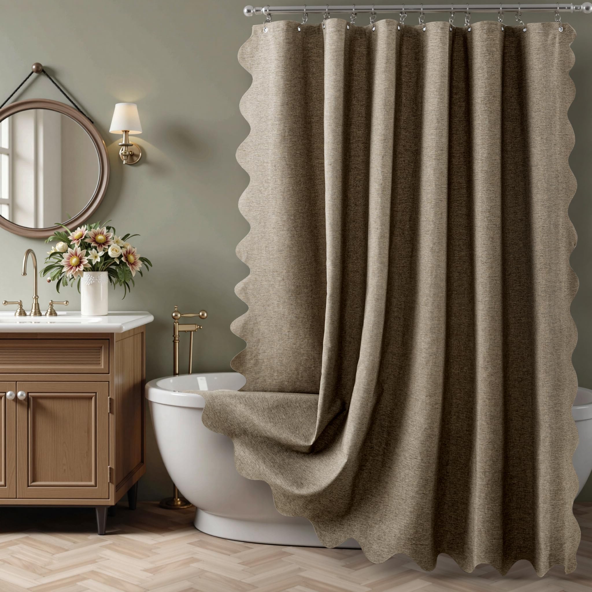 Tritard Cortina de ducha festoneada marrón con textura de lino resistente e impermeable, cortinas de ducha para baño, juego de cor