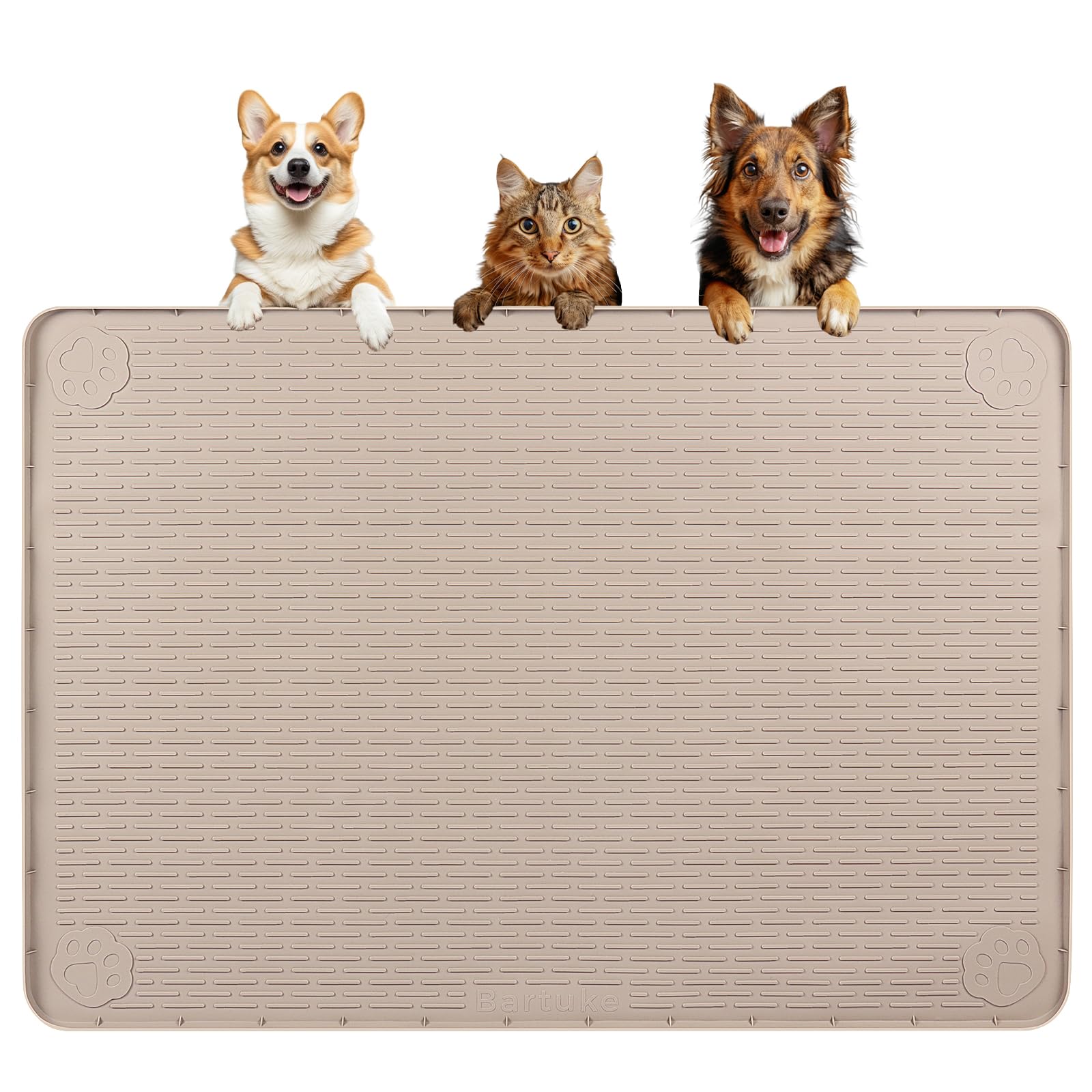 Tapete de comida para perros, extra grande de 40 x 28 pulgadas, tapete de silicona para alimentación de mascotas con borde elevado