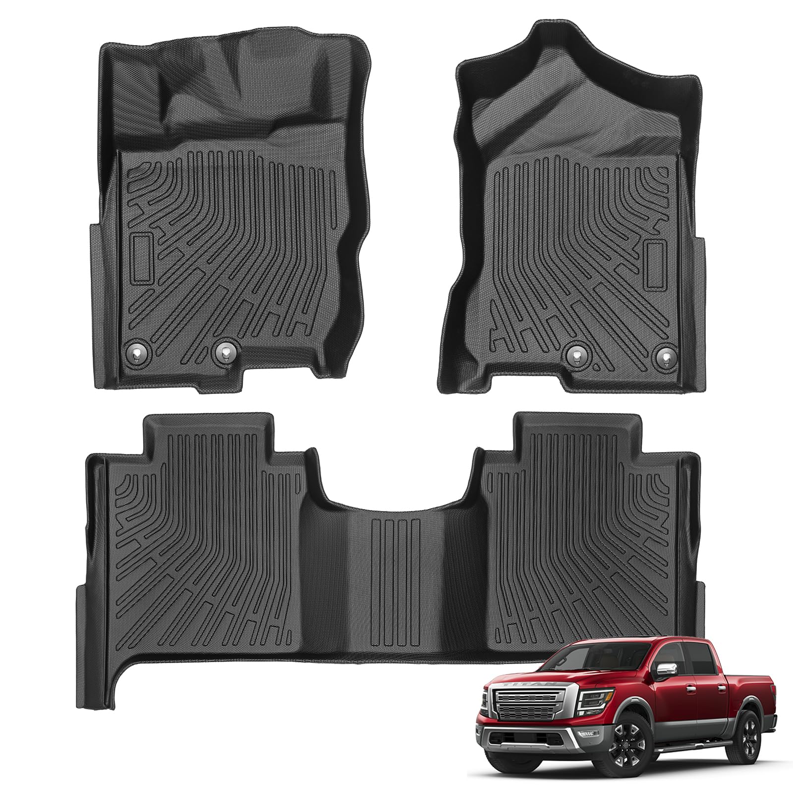 Alfombrillas para Nissan Titan 2017-2024 | Titan XD Crew Cab 2016-2024 (no compatible con cabina King) con organizador trasero deb