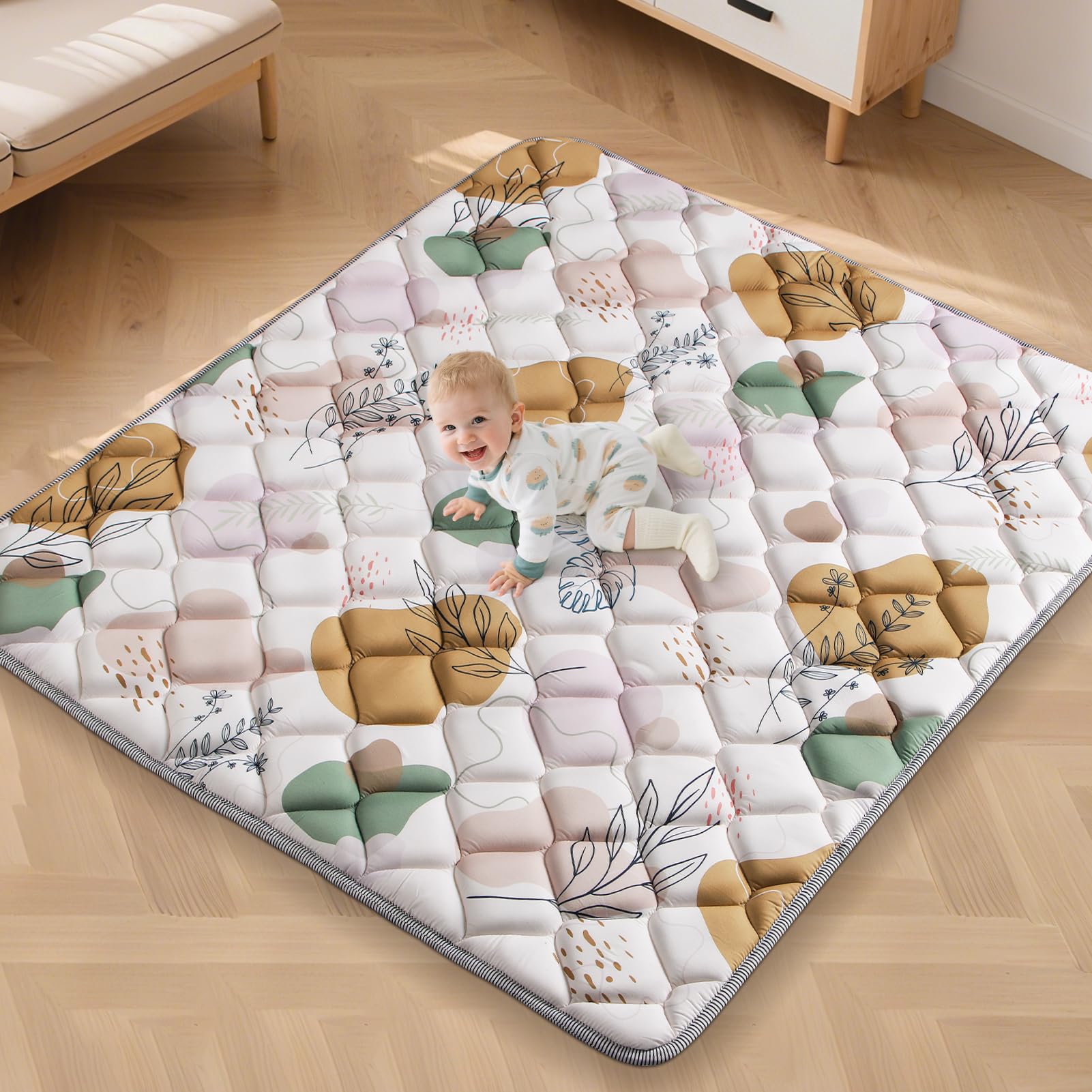 Tapete de juego para bebé de 65 x 50 pulgadas, tapete para bebés de 6 a 12 meses, antideslizante, seguro y para gatear, tapete de