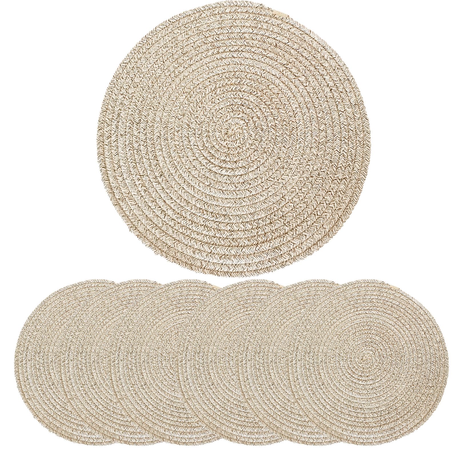 Round Placemats Set of 6, 13 Inch Cotton Rope Woven Table Placemats Boho Farmhouse Rustic Non-Slip Heat Resistant Place Mats Washa