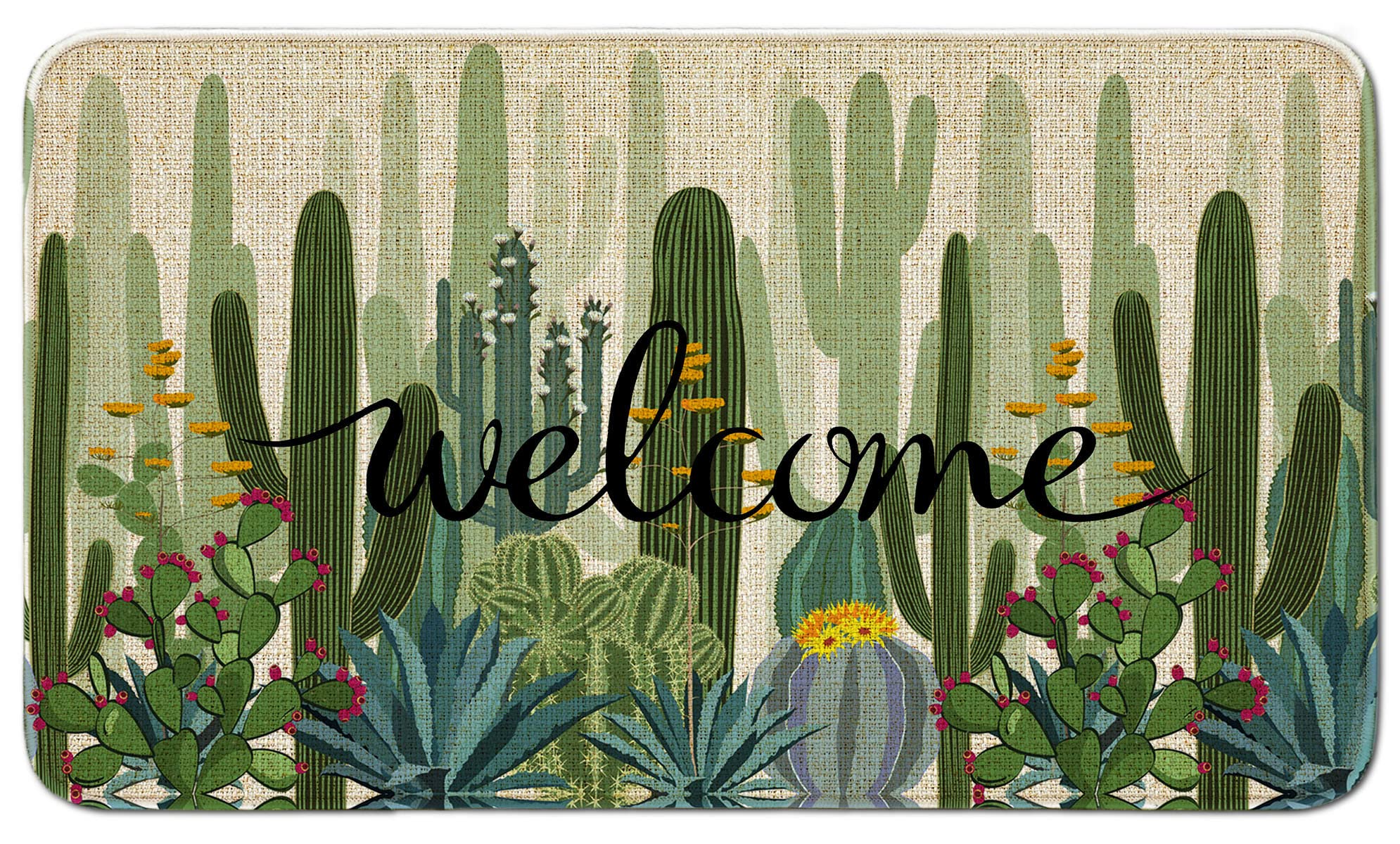 Tapete de bienvenida para puerta de exterior, color verde cactus, 30 x 17 pulgadas, antideslizante, lavable, tapete para puerta de