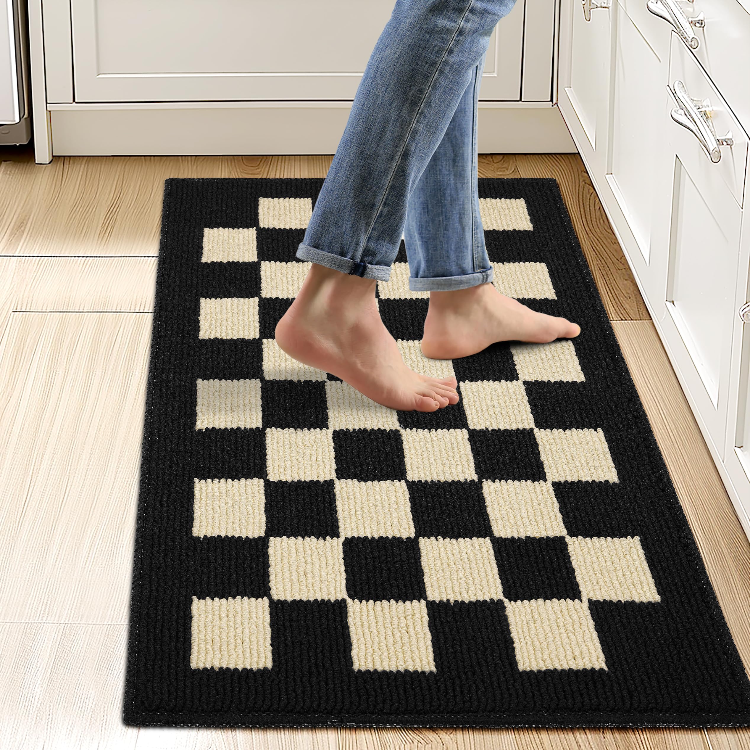 Alfombras de cocina para suelo antideslizante Waterpoof, mosaico negro