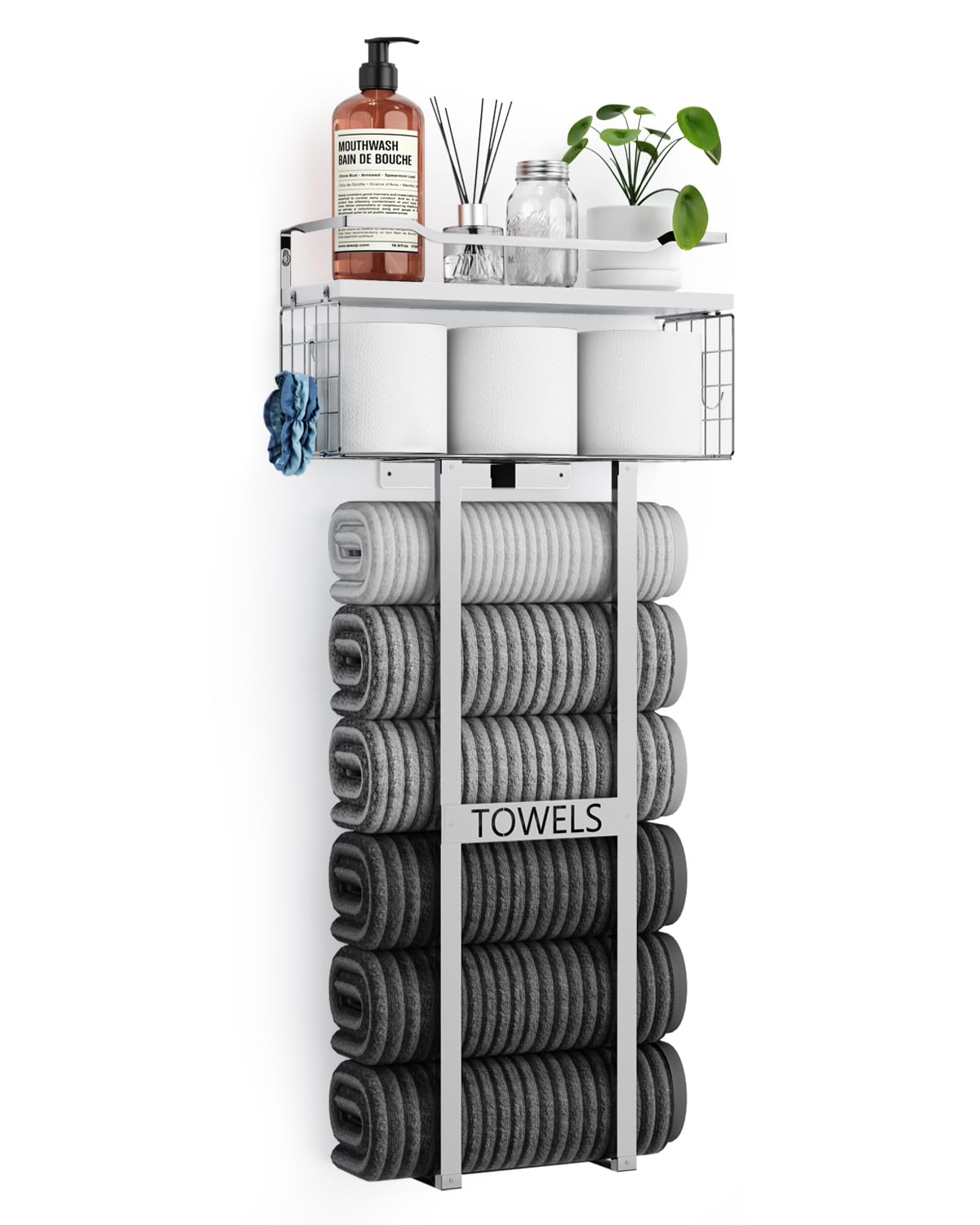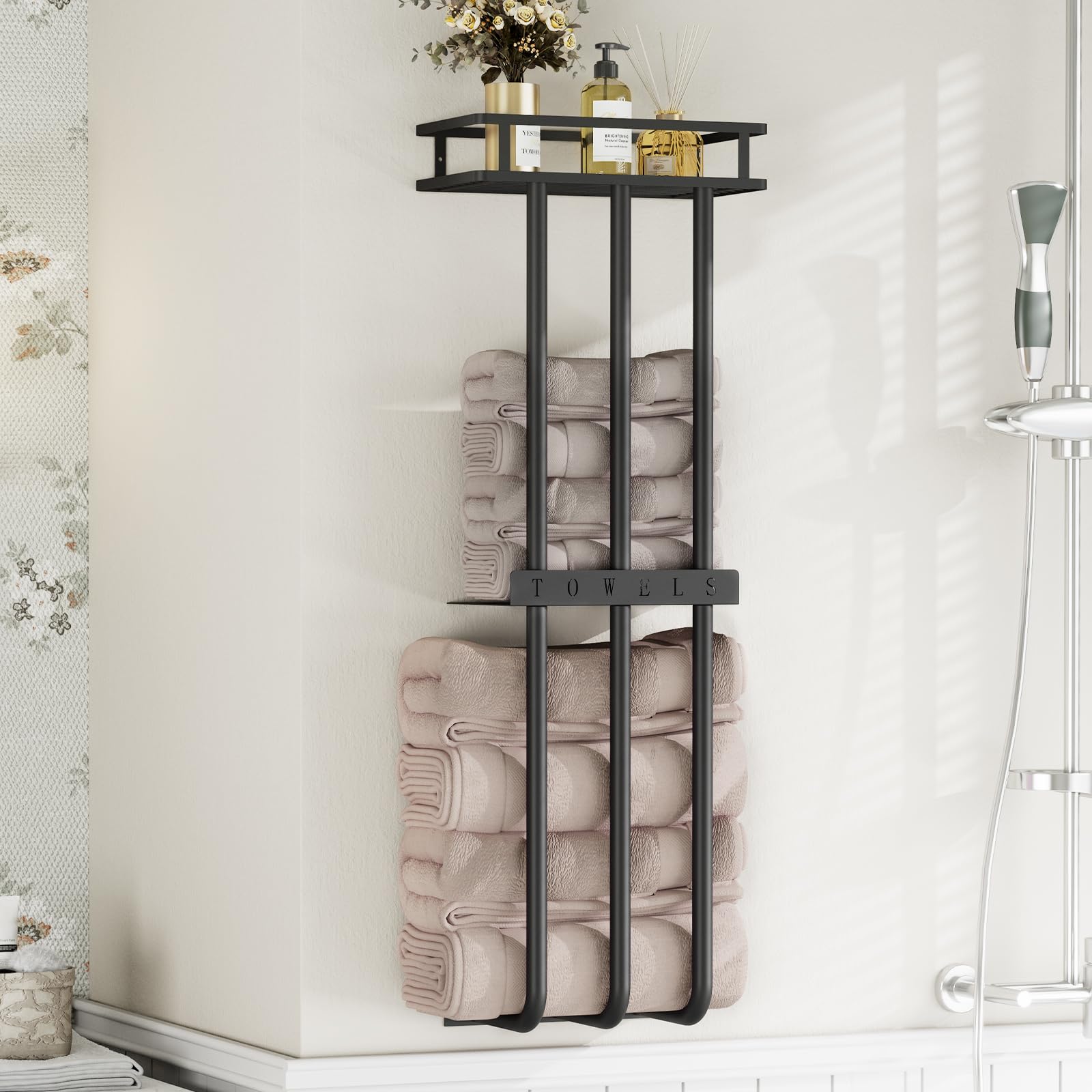 Toalleros para baño, toallero de baño montado en la pared con 2 niveles de soporte para toallas enrollado, almacenamiento de toall