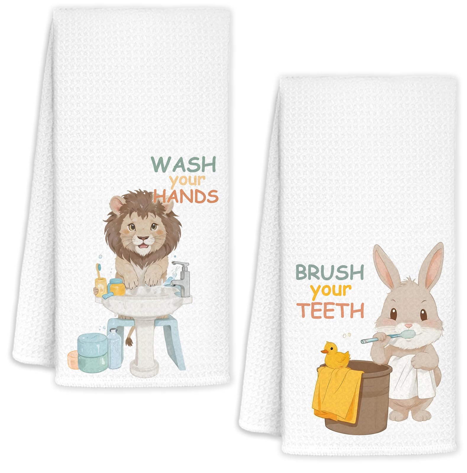Toallas de mano para niños, toallas decorativas de conejo león para baño, baño, toallas de mano de animales para baño, juego de 2,