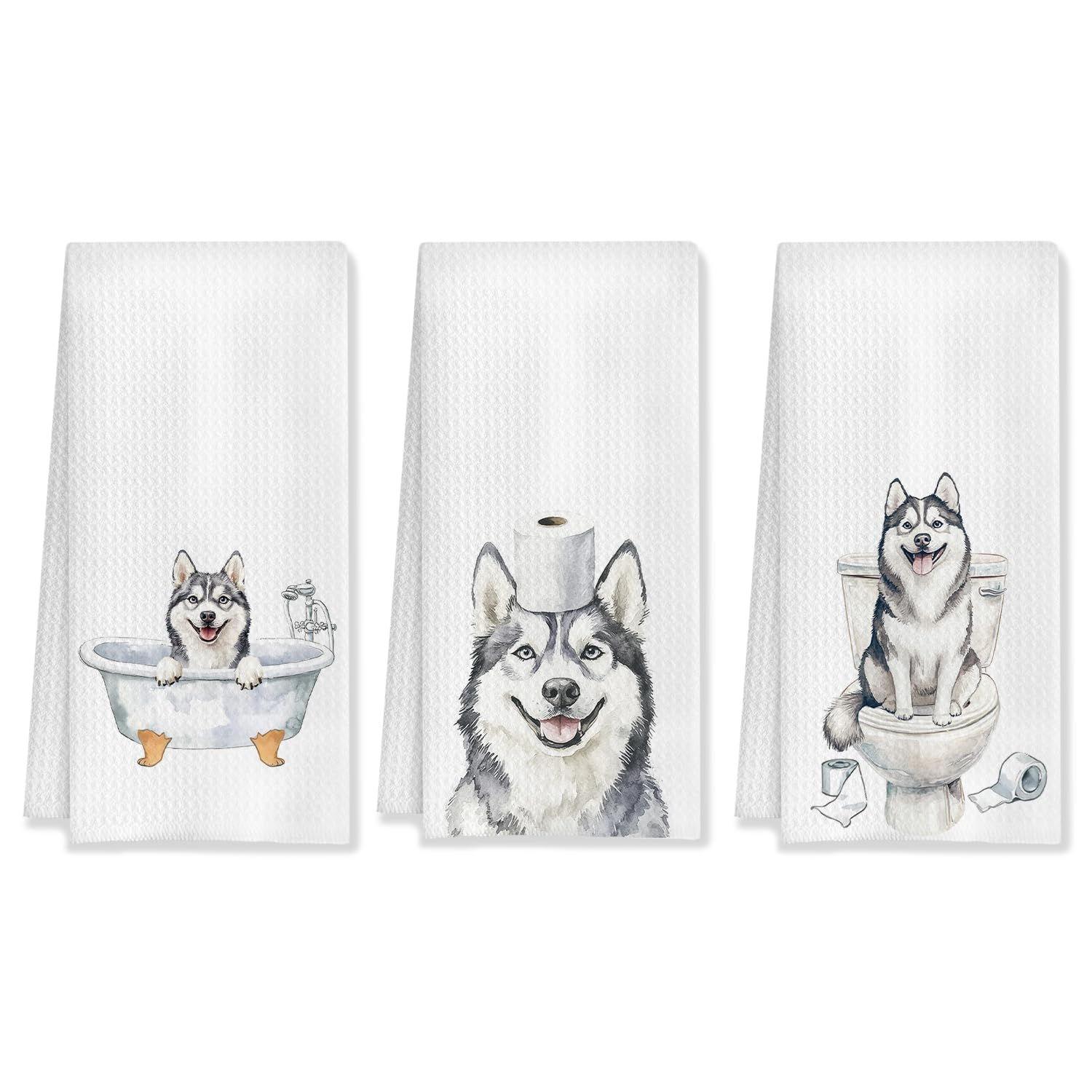 Juego de 3 toallas de mano divertidas para decoración de baño, regalos de mamá husky, regalos para amantes de los husky, decoració
