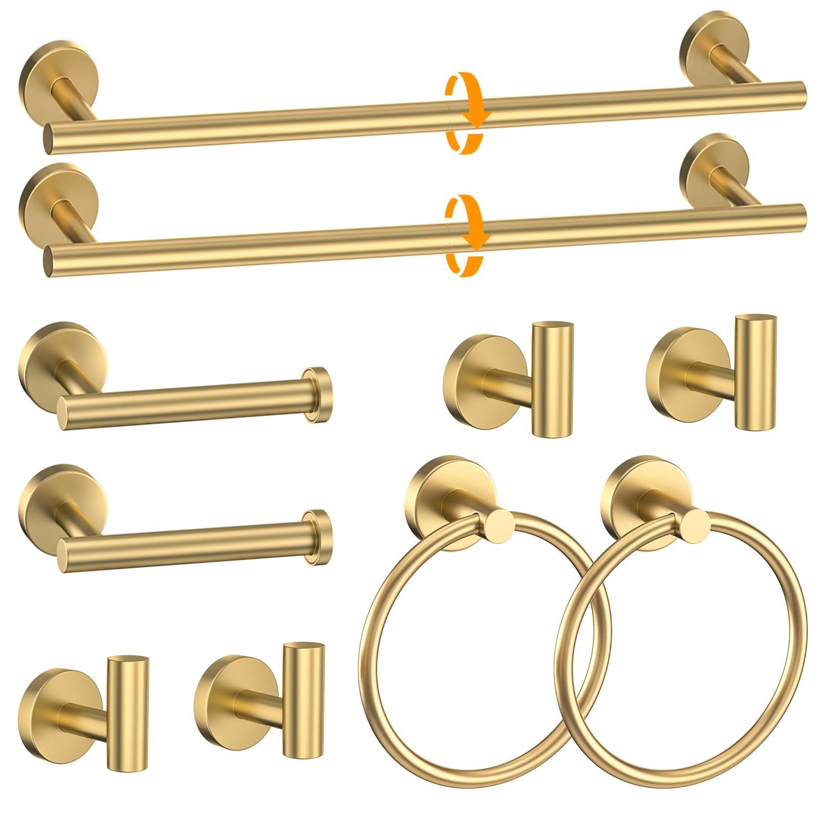 Juego de 10 toallas redondas de oro cepillado, juego de accesorios de baño redondos que incluye toallero de 23.6 pulgadas, soporte