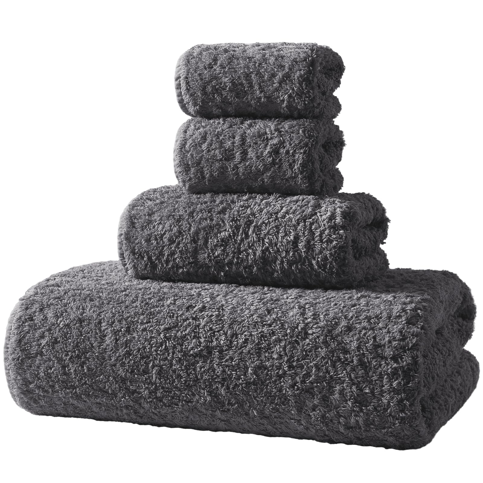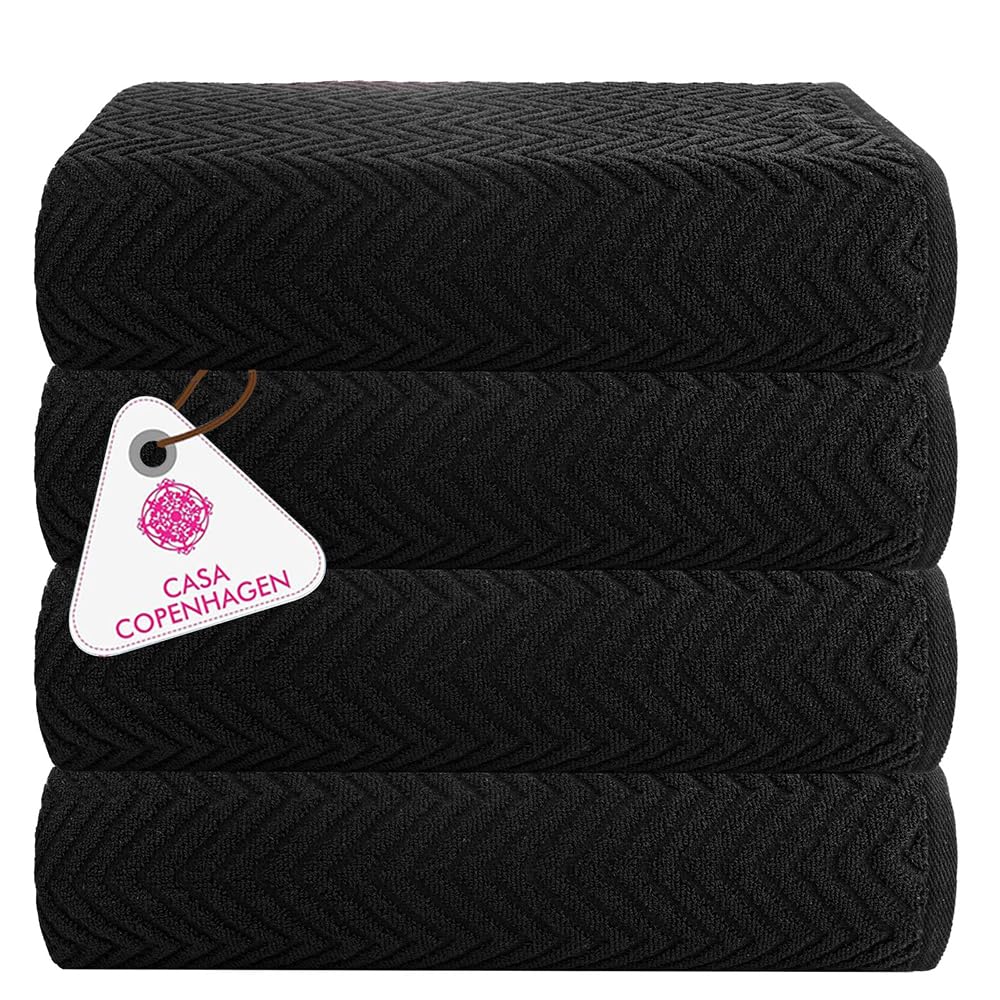 CASA COPENHAGEN Wave – Juego de 4 toallas texturizadas, color negro, 550 GSM, 4 toallas de baño de algodón de uso áspero y resiste