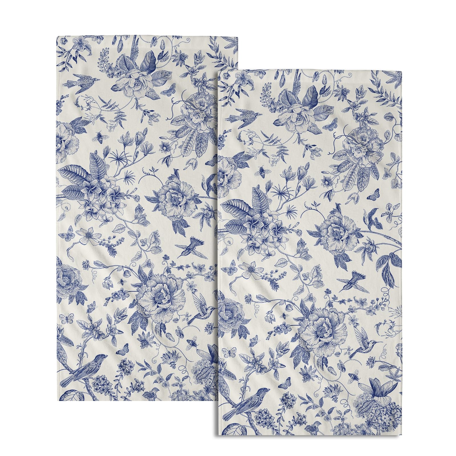 Giwawa Chinoiserie – Juego de 2 toallas de mano decorativas con diseño de hojas azules, suaves y absorbentes, para cocina, habitac