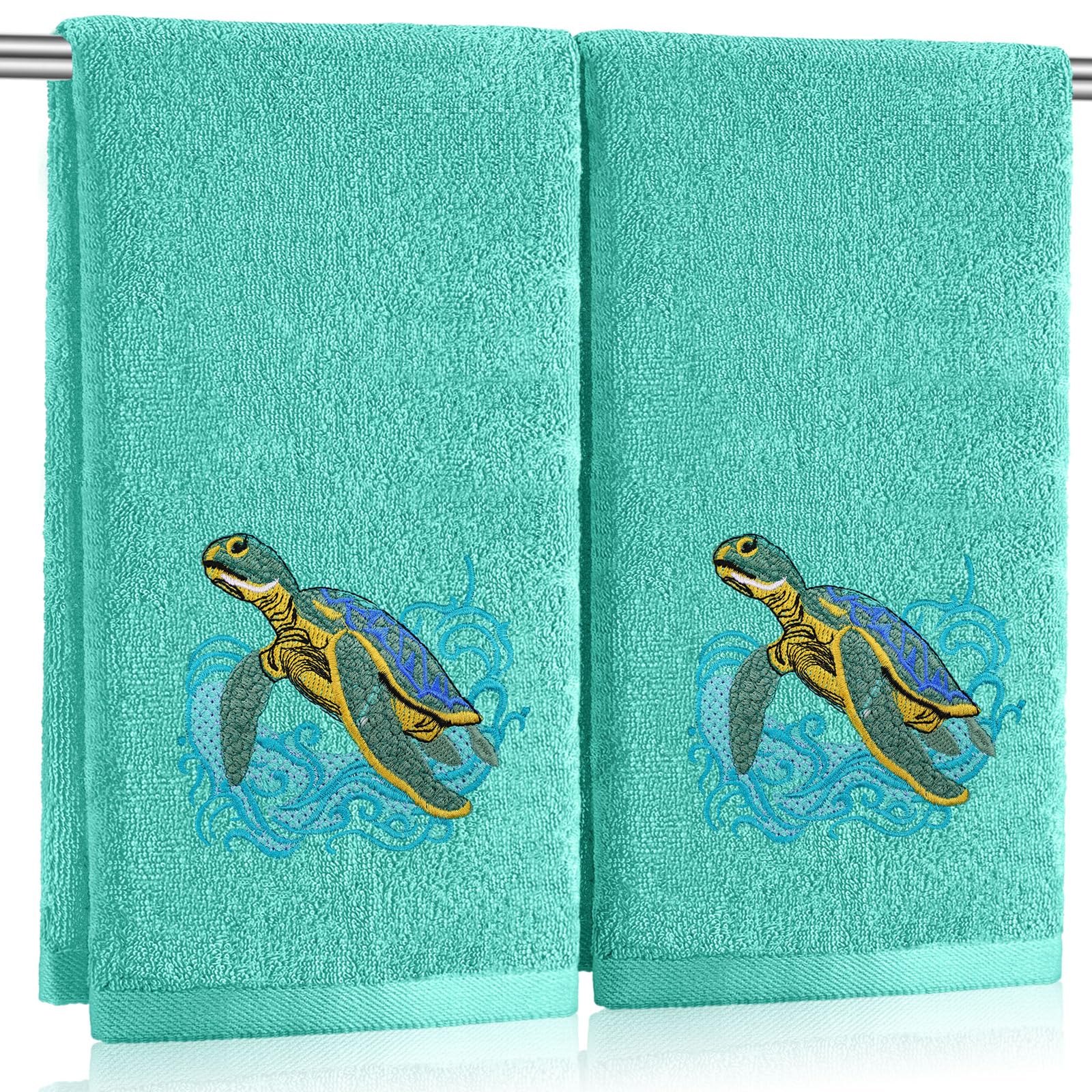 2 toallas de mano de tortuga marina para decoración de baño, 14 x 29 pulgadas, bordadas, 100% algodón, suaves, absorbentes, para p