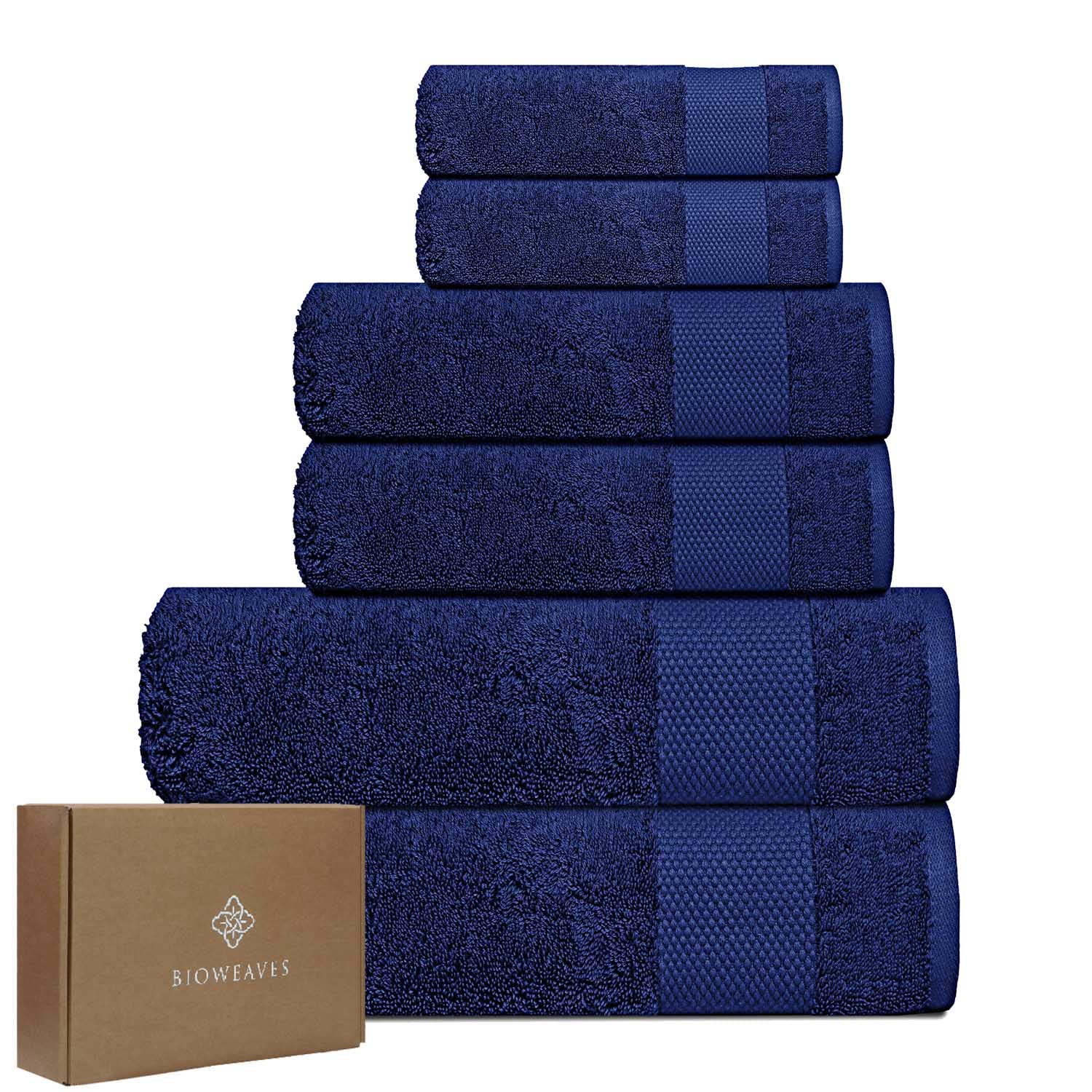 BIOWEAVES Juego de 6 toallas de baño de lujo 100% algodón orgánico con certificación GOTS, 2 toallas de baño, 2 toallas de mano y