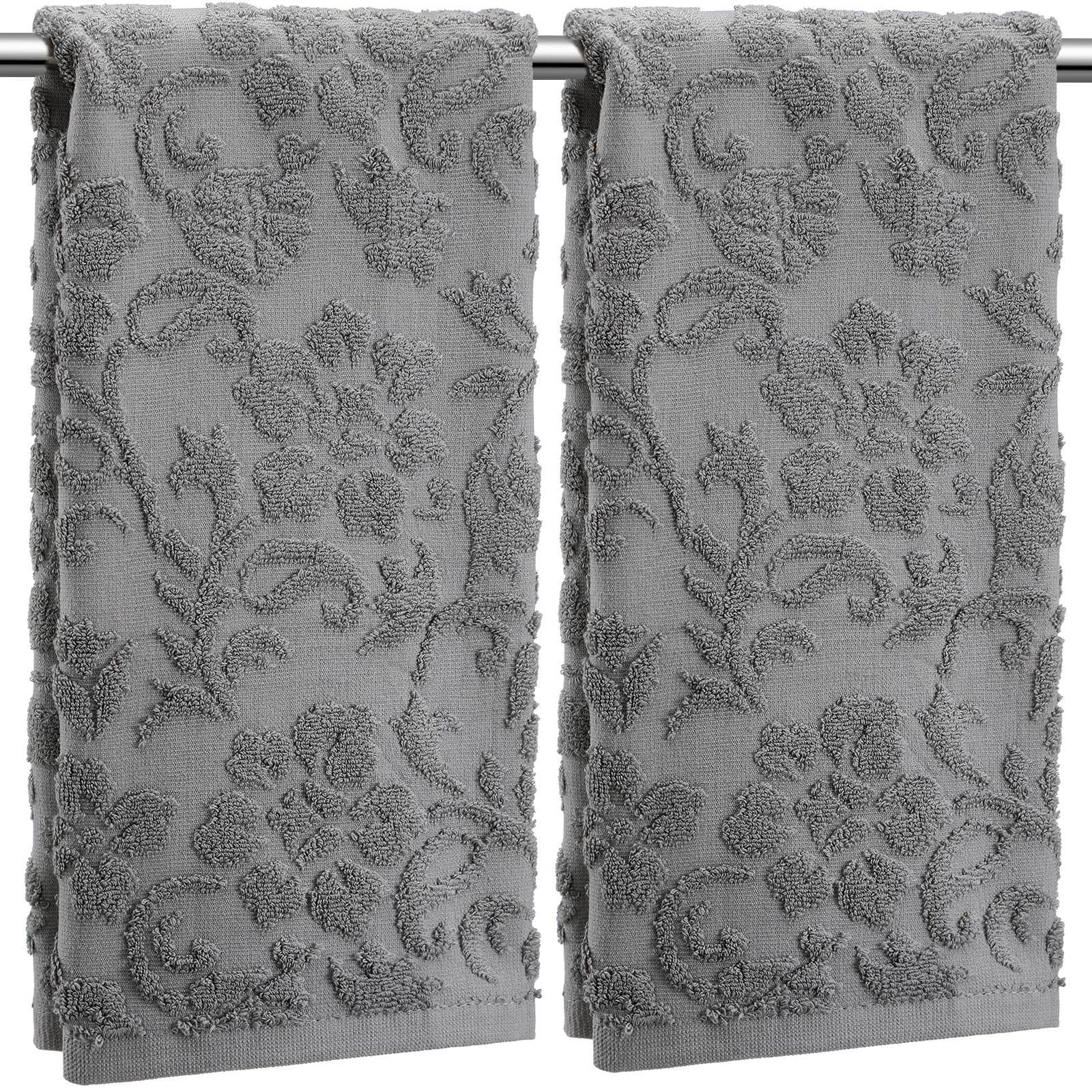 2 toallas de mano de jacquard floral para baño, toallas de mano grises, 100% algodón, absorbente, tejido decorativo, decoración de