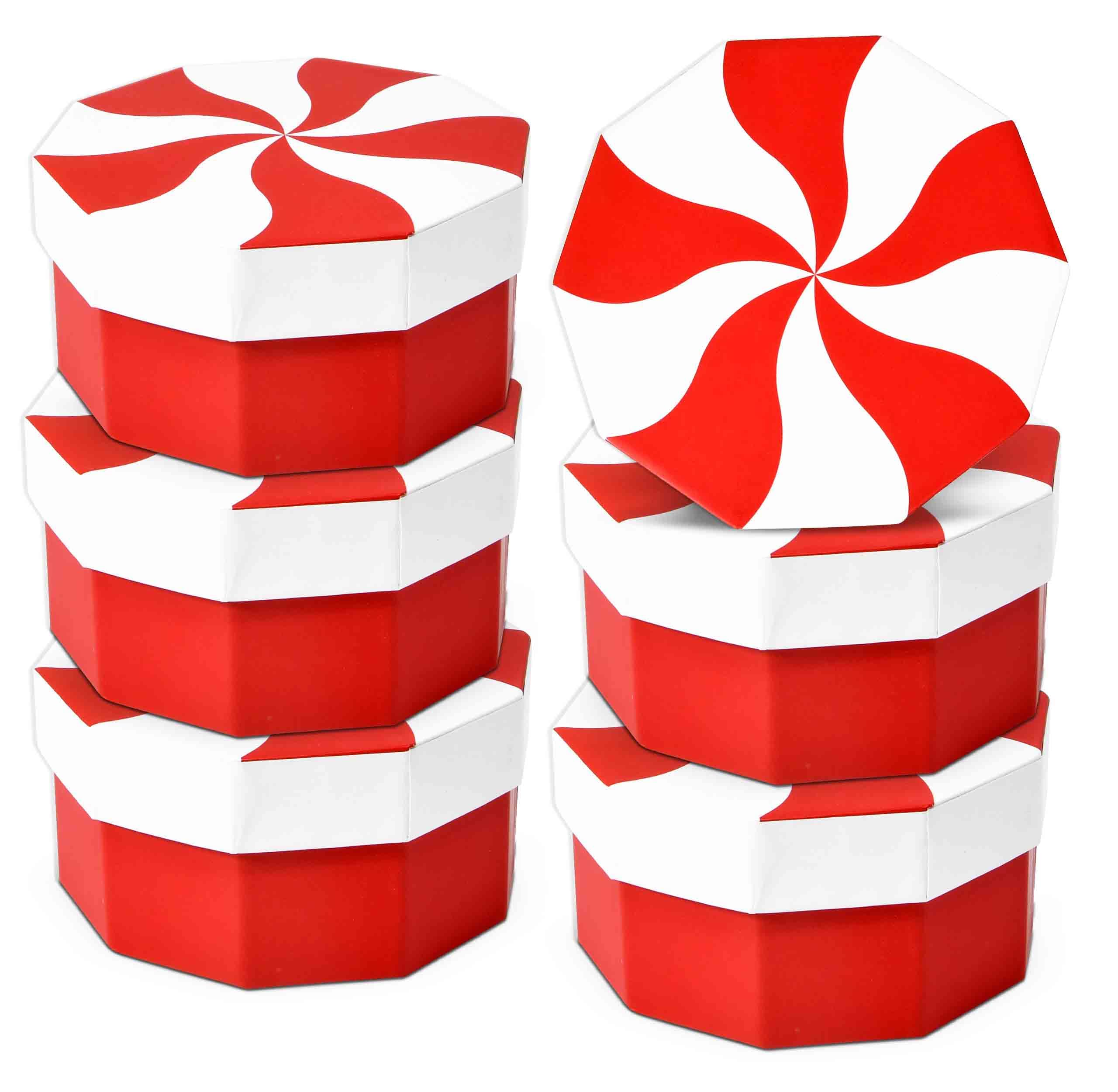 Small Christmas Gift Boxes 6 Pack Red and White Candy Cane Design 4.5 inch Round Boxes for Gift Cards Candy Cookies Jewelry & More