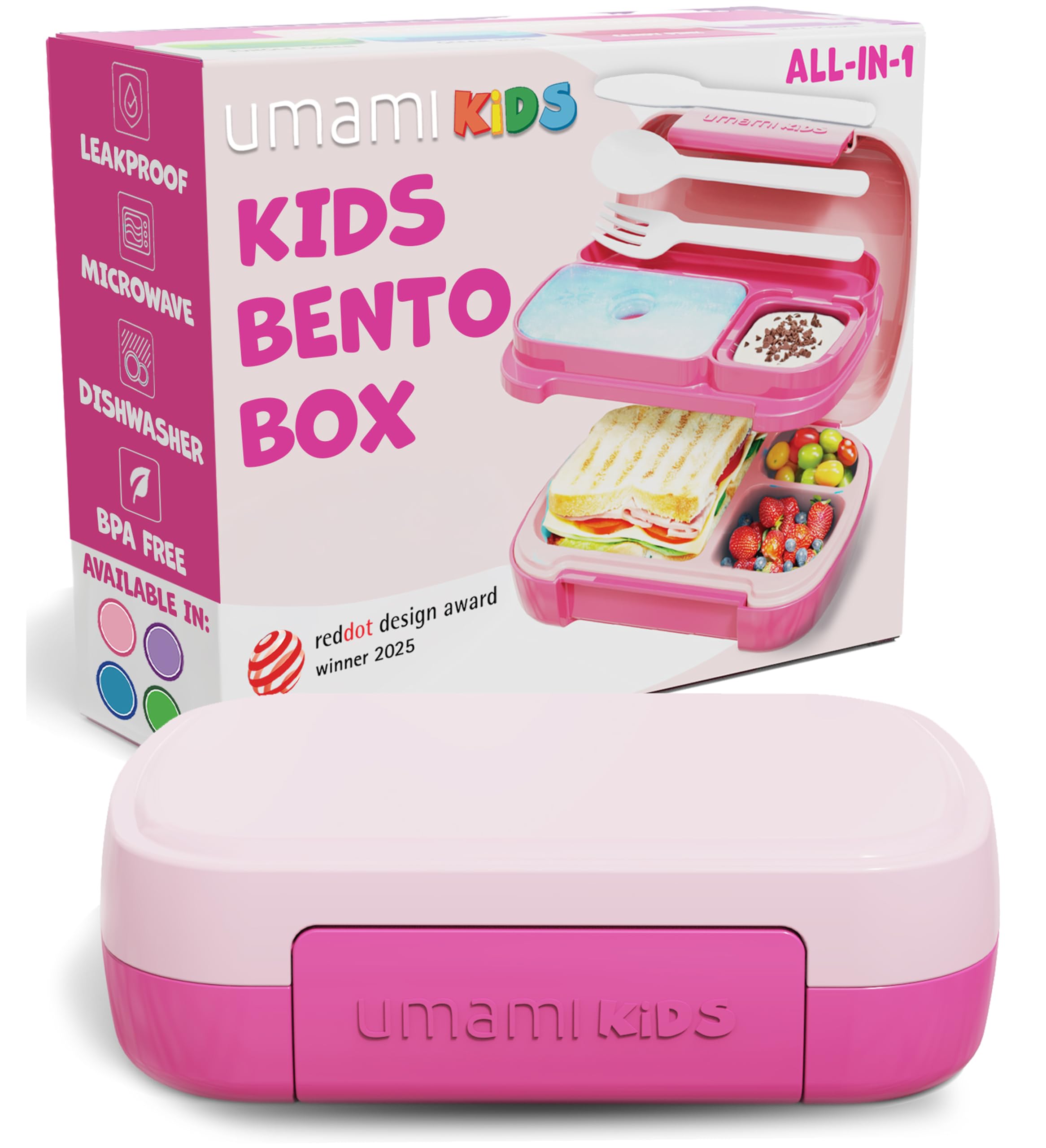 Umami Lonchera Bento todo en 1 para niños, paquete de hielo y utensilios incluidos, 100% a prueba de fugas y sin BPA, lonchera fav