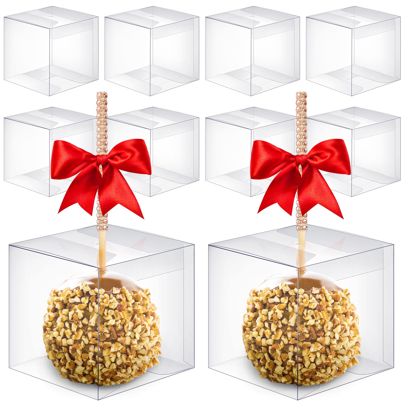Juexica 50 cajas de dulces y manzanas con agujero de 4 x 4 x 4 pulgadas, cajas de regalo para bodas, cosecha, fiestas, chocolates,
