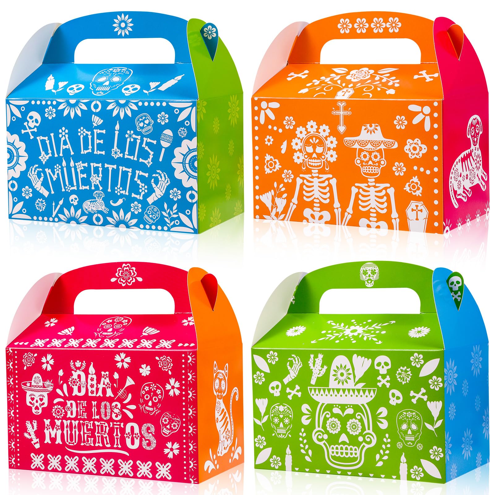 HOWAF 12pcs Day of The Dead Gift Boxes with Handle, Dia De Los Muertos Goodie Boxes for Mexican Party Supplies Ofrendas Alter Deco
