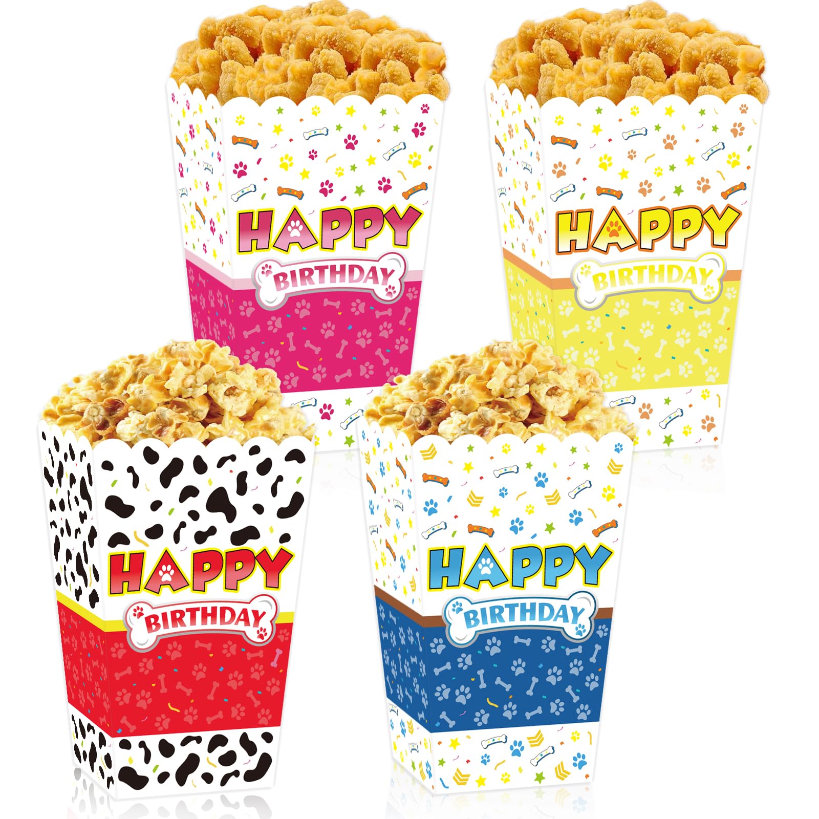 Paquete de 24 cajas de palomitas de maíz con diseño de patas de perro de dibujos animados para fiestas, recipientes de papel para
