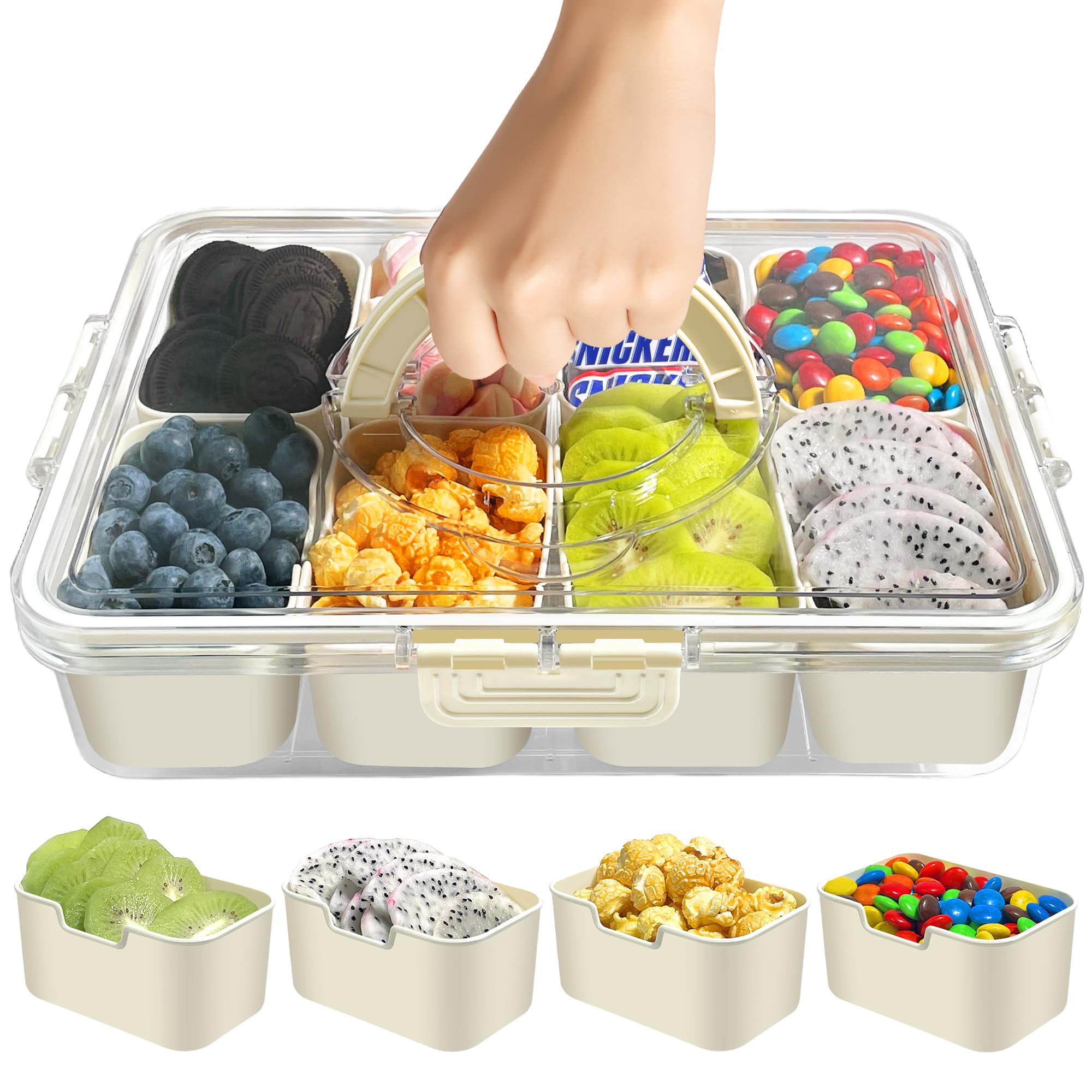 Bandeja dividida para servir con tapa y asa, contenedor de caja de aperitivos, platos portátiles para aperitivos, 8 compartimentos