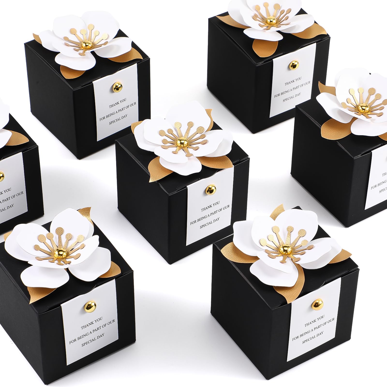 Affrolling 50 cajas de regalo de boda con tarjeta de agradecimiento, cajas cuadradas de dulces, caja de regalo de novia de papel p