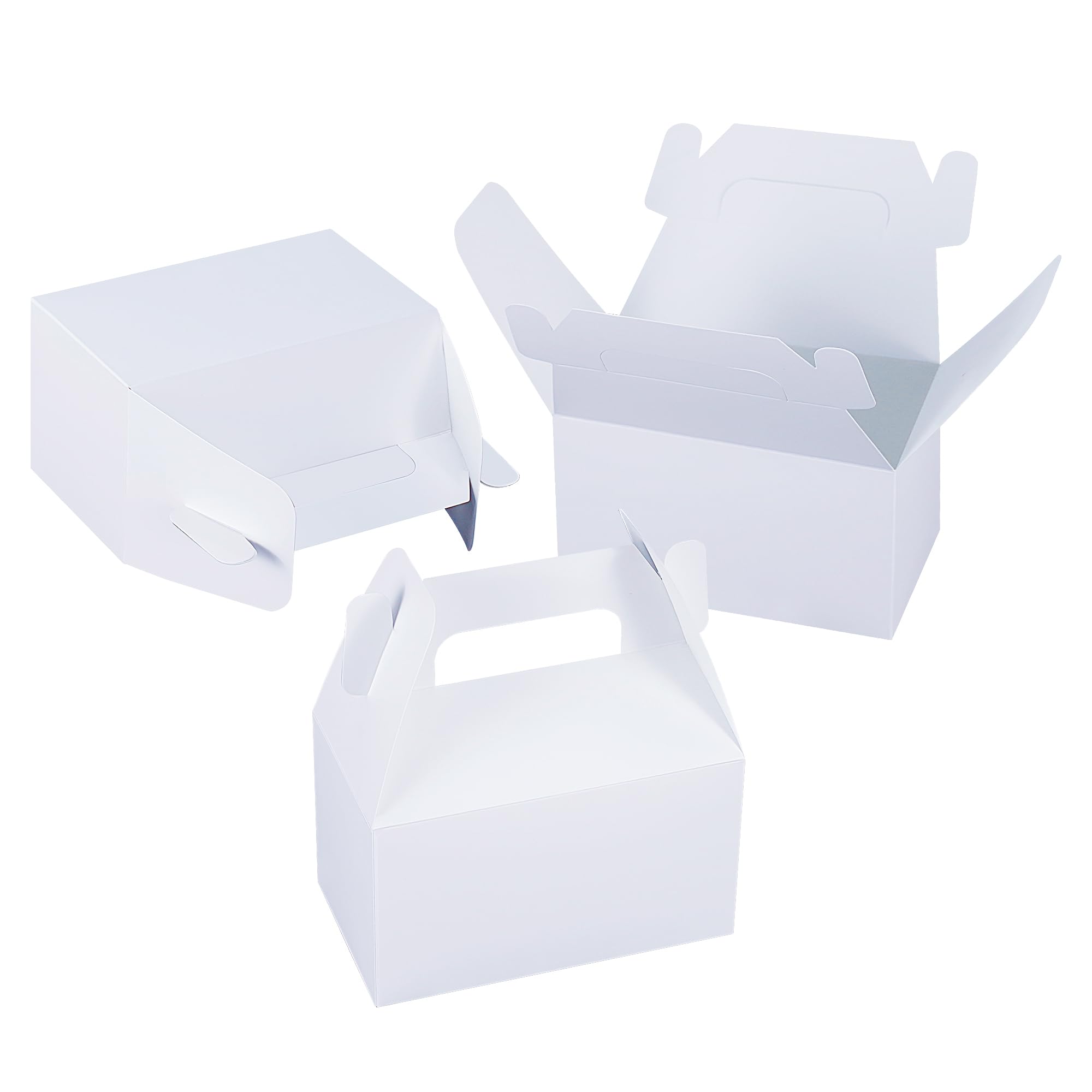 Moretoes Paquete de 48 cajas de regalo blancas para fiestas, cajas de regalo a dos aguas con asas para cumpleaños, bodas, baby sho