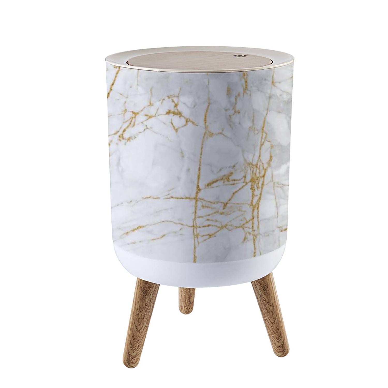 Bote de basura pequeño con tapa, fondo de textura de mármol de oro blanco con alta resolución, cubo de basura redondo, tapa de pre