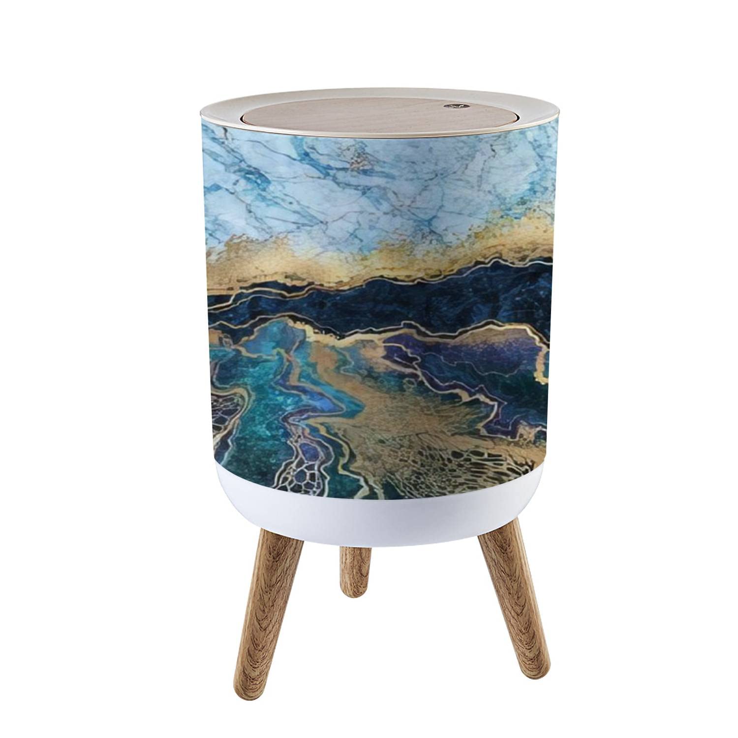 Bote de basura pequeño con tapa, abstracto de mármol dorado abstracto de tinta líquida de mármol, pintura artística sobre papel Im