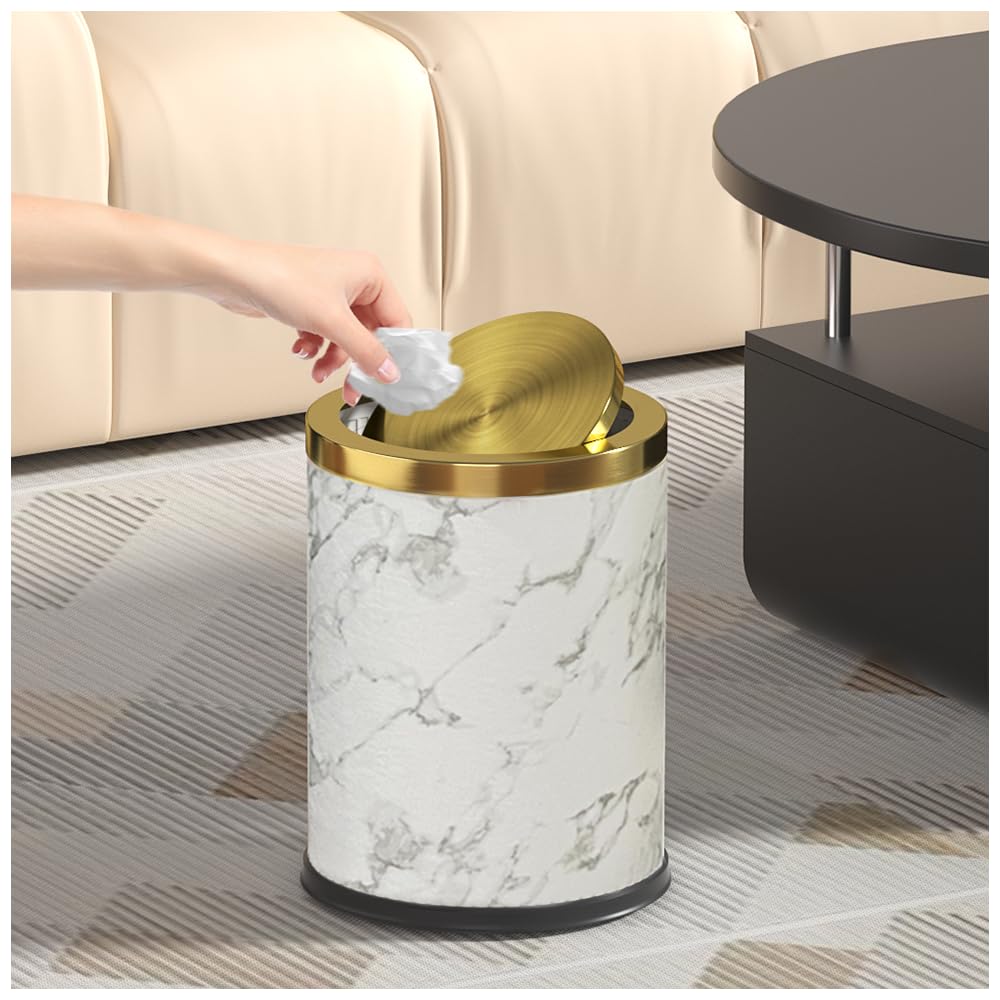 Cubo de basura de baño de 4 galones con tapa giratoria, cubo de basura de oro blanco, canasta de basura de cuero de mármol blanco,