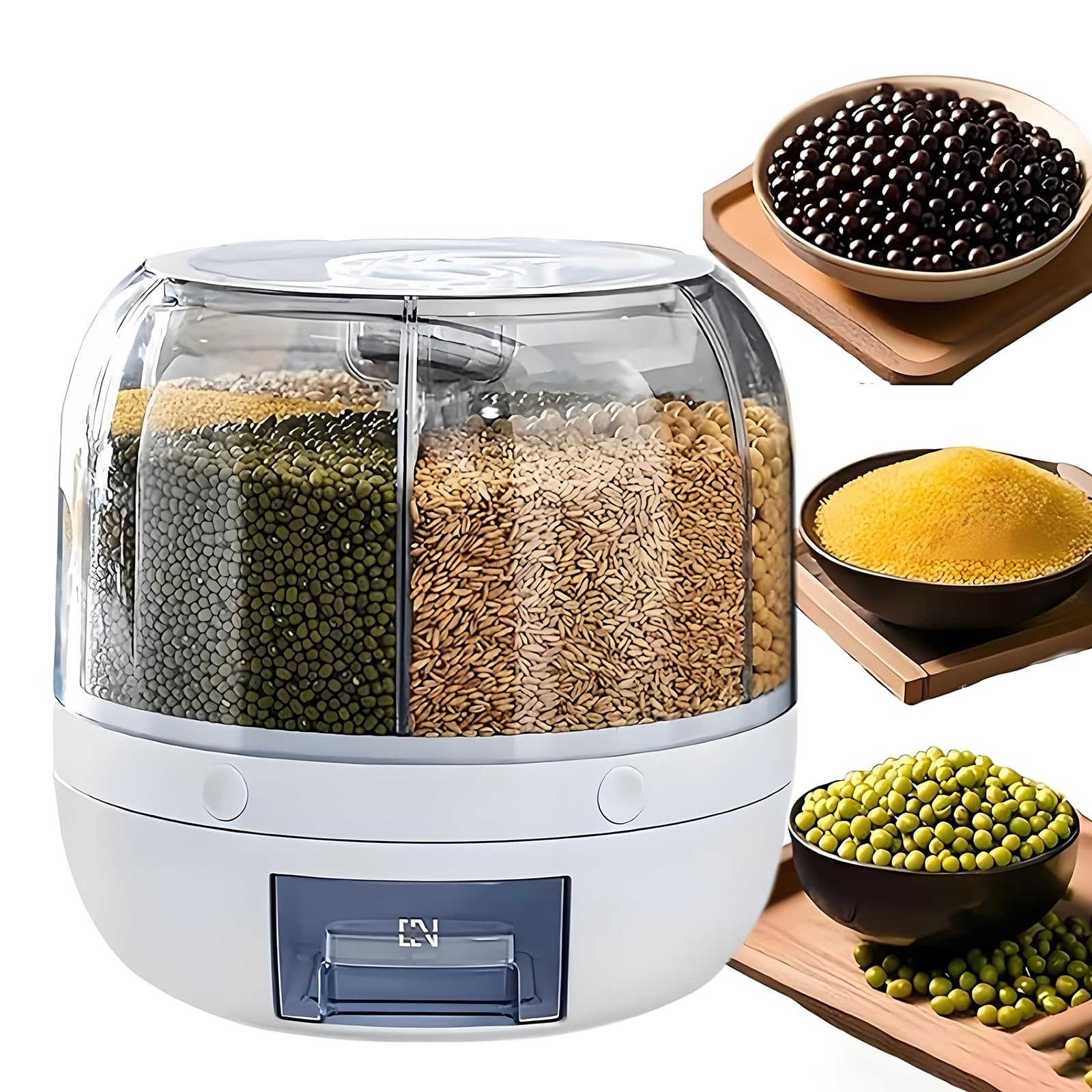 Contenedor de almacenamiento de granos y arroz, Dispensador de granos de 6 rejillas, Dispensador de alimentos grande giratorio de