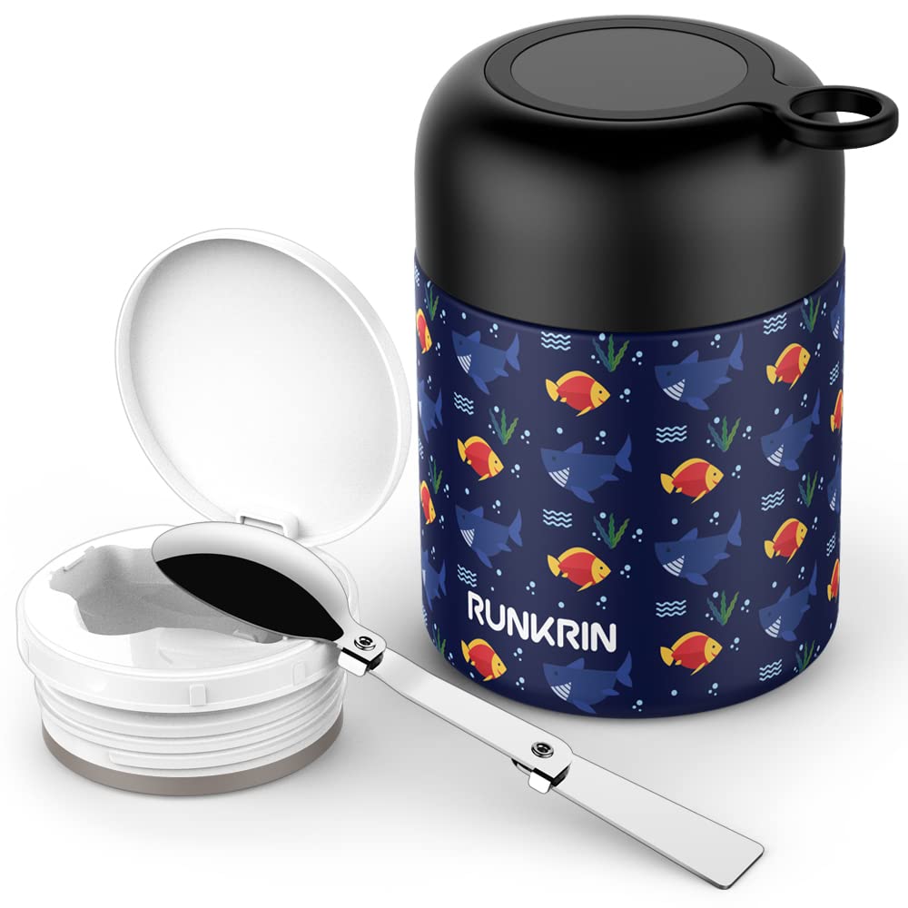 Tarro de alimentos aislado de 16 onzas con cuchara, termo de acero inoxidable a prueba de fugas para comidas calientes y frías, lo