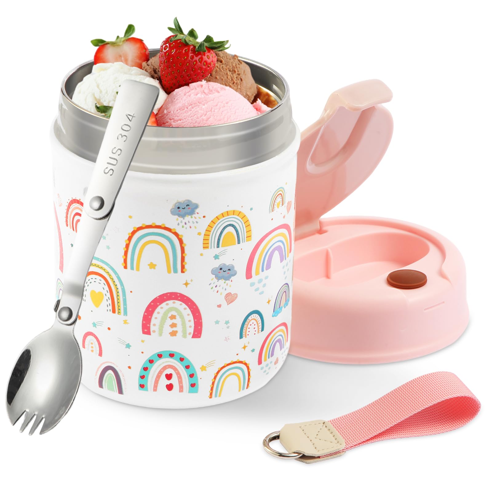 lazycozy® Termo para alimentos calientes, 17 onzas, termo de sopa con cuchara plegable, tarro de alimentos aislado al vacío portát