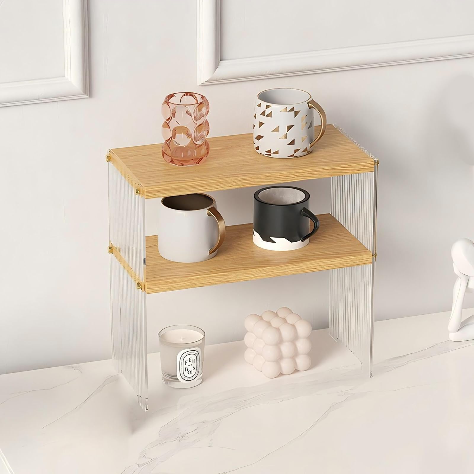 Organizador acrílico para estación de café, estante de almacenamiento de escritorio de madera para oficina, cocina y sala de estar