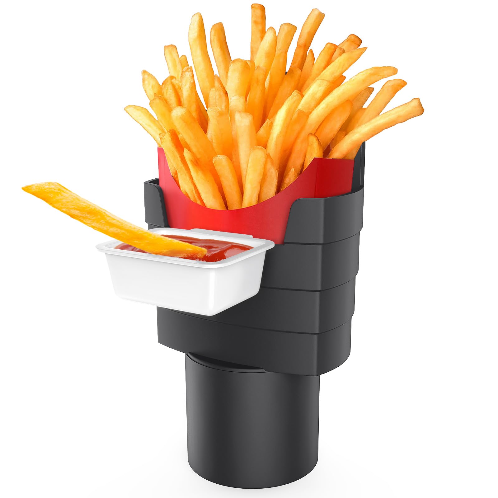 Soporte para papas fritas para automóvil, soporte para salsa de inmersión con taza, soporte para condimentos con taza para salsa d