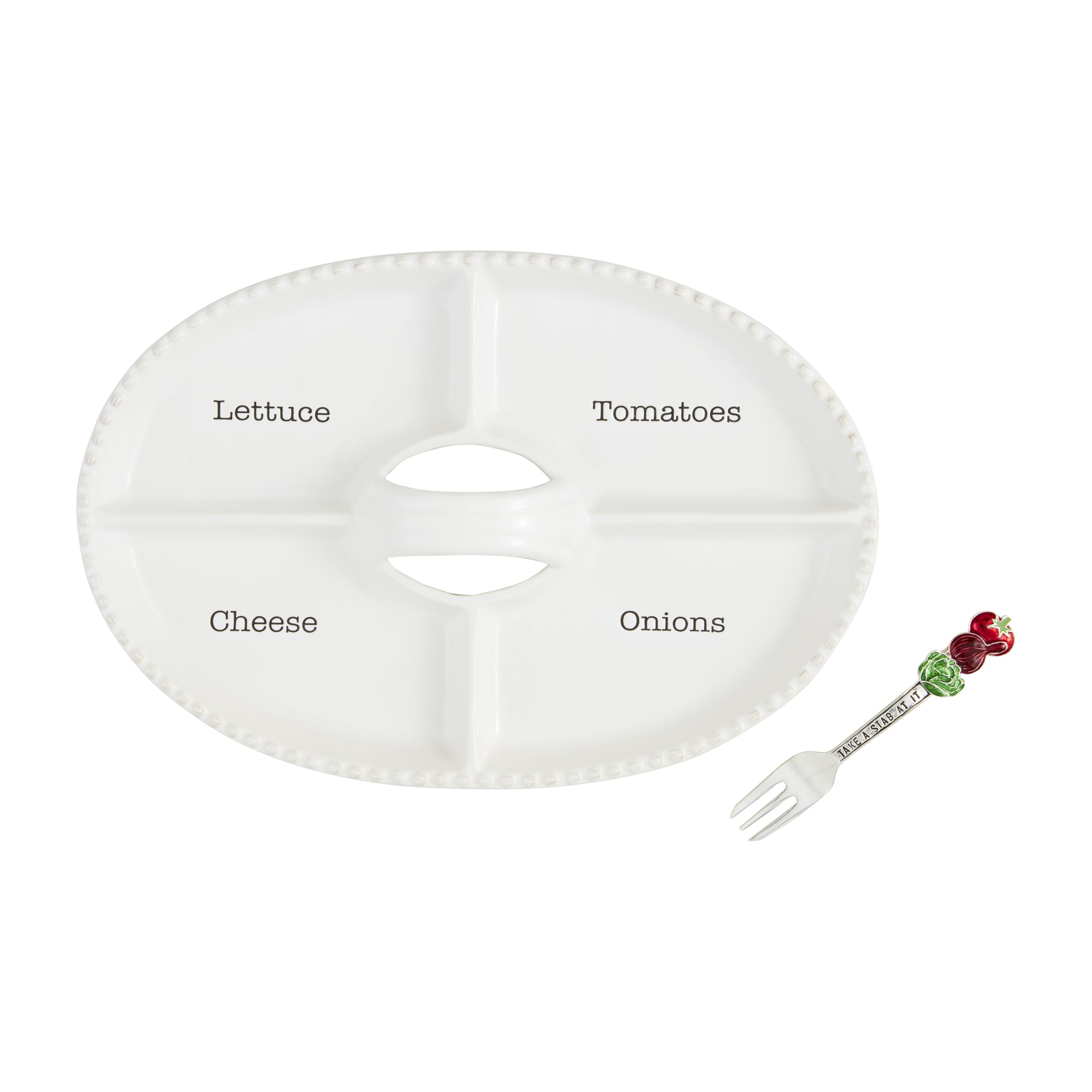 Mud Pie plato 8 x 12 tenedor 5 1/2″ Circa mango Condimento Titular, Blanco