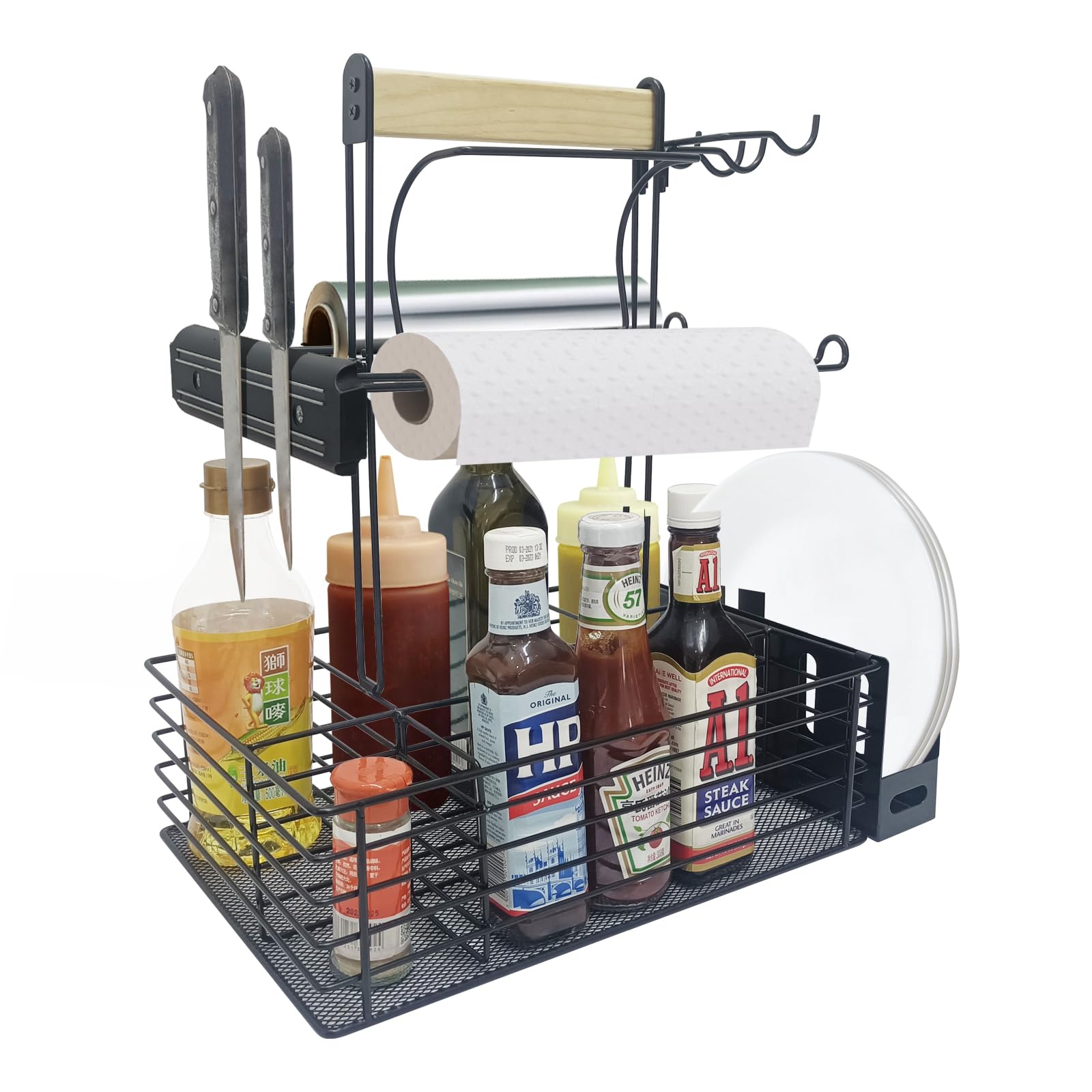 Organizador de parrilla para parrilla al aire libre, organizador de parrilla con soporte para toallas de papel, organizador de par