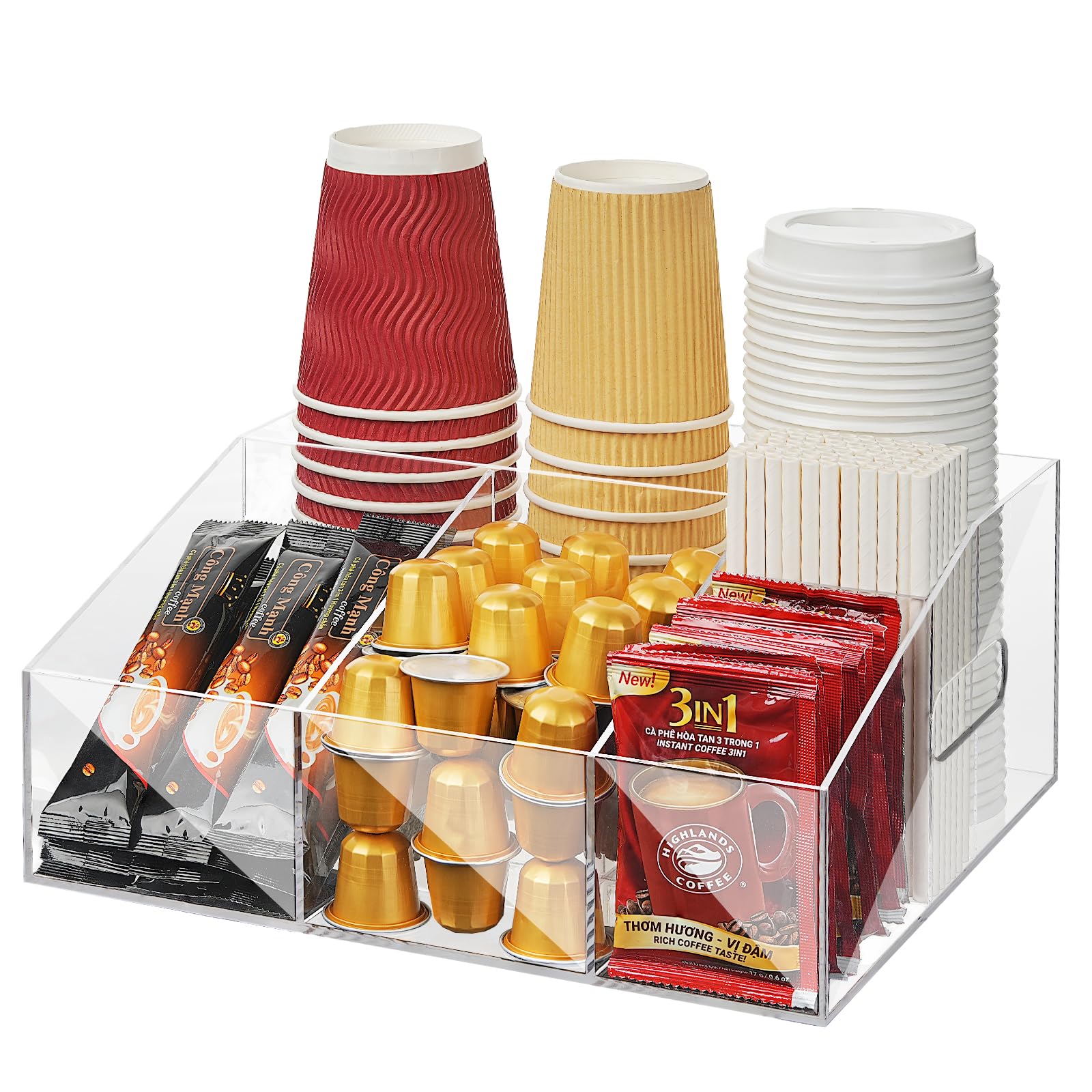 Organizador de barra de café, organizador acrílico de 5 compartimentos para encimera, tapas de tazas, vainas, jarabes y otros acce