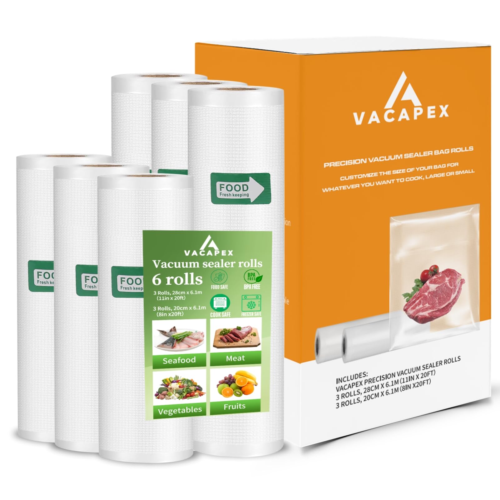SurpOxyLoc Paquete de 8 rollos de bolsas selladoras al vacío de 8 x 20 pies (4 rollos) de 11 x 20 pies (4 rollos) sin BPA, resiste