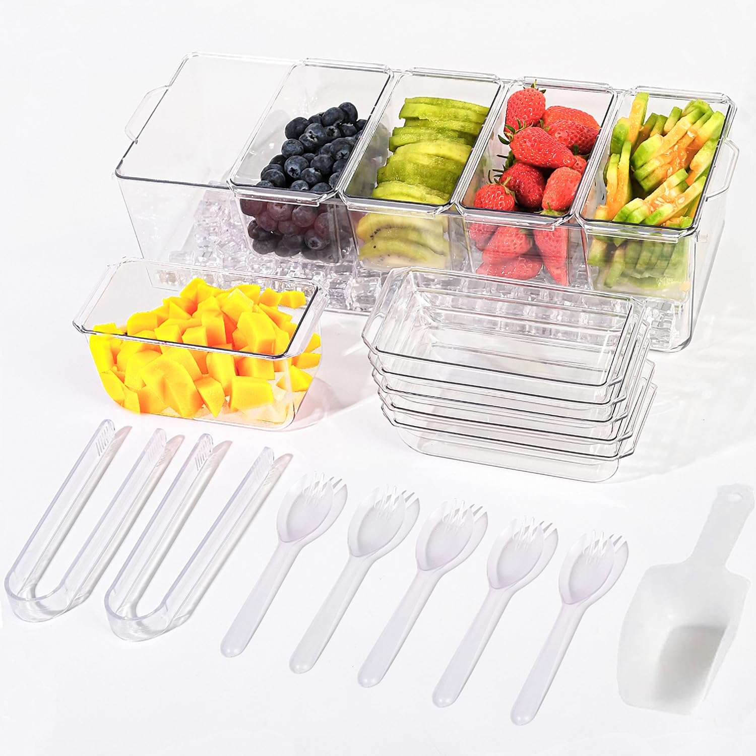 MJM – Bandeja con compartimentos y tapa para servir condimentos fríos, recipiente sobre hielo para guarniciones y ensaladas, dispe