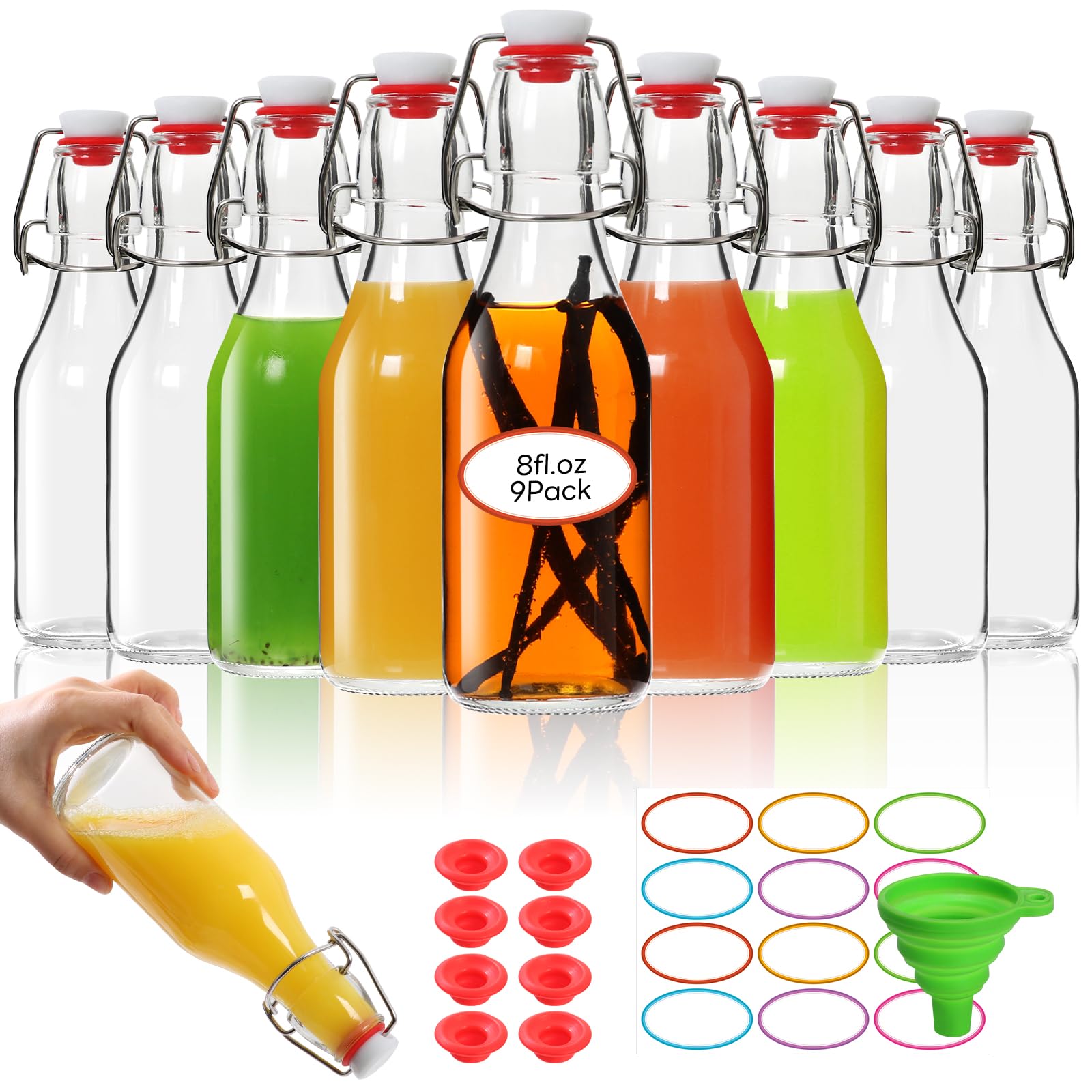 AuroTrends Botellas de vidrio con tapa abatible de 8 onzas, 9 unidades, botellas de vidrio abatibles con tapas herméticas para bot