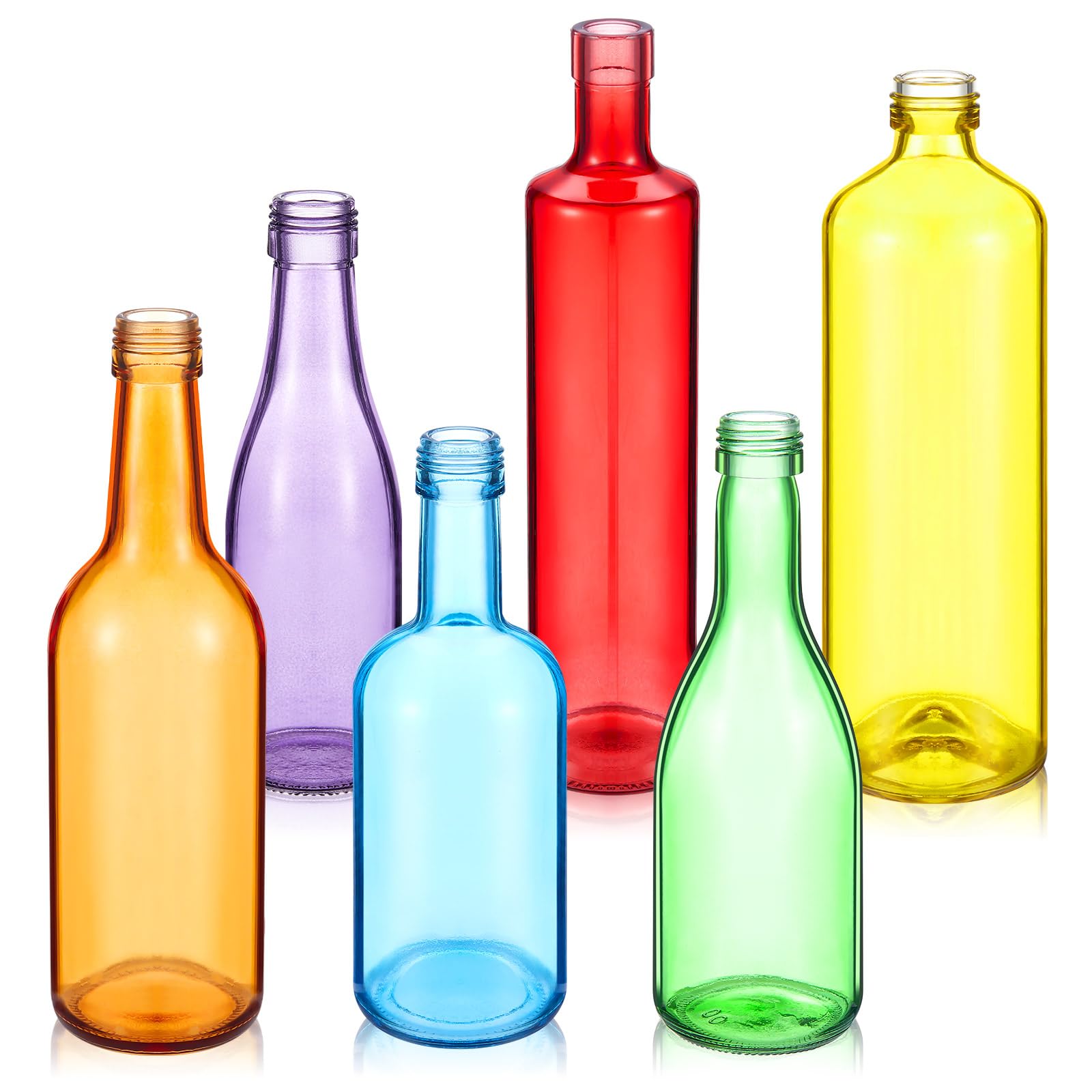 Zhehao 6 botellas de vidrio de colores, 6 formas, coloridas botellas de vino vacías, botella de vidrio decorativa para botella, ár
