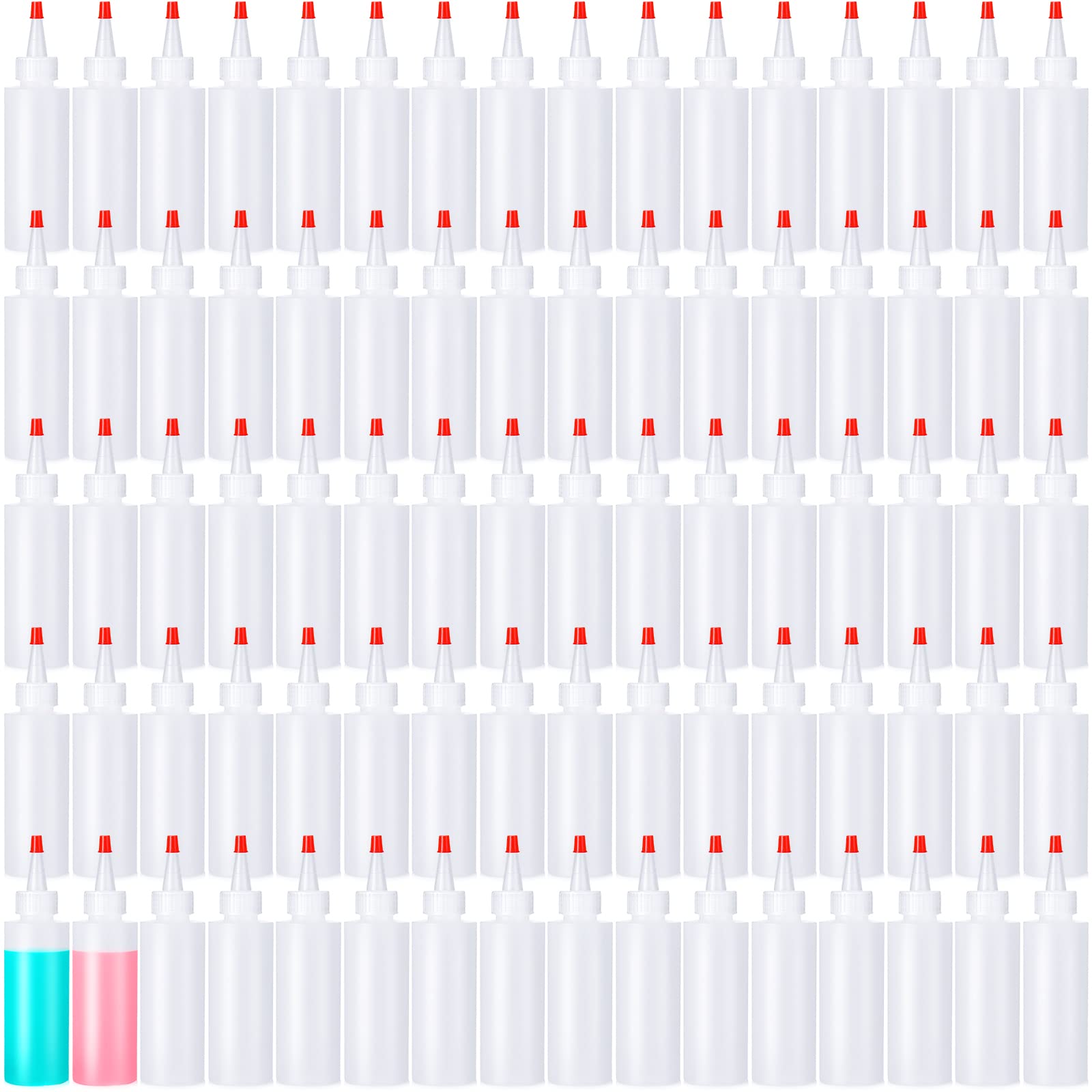 Nuenen 80 botellas de plástico de 4 onzas con tapa de punta roja, botellas vacías recargables para glaseado, decoración de galleta