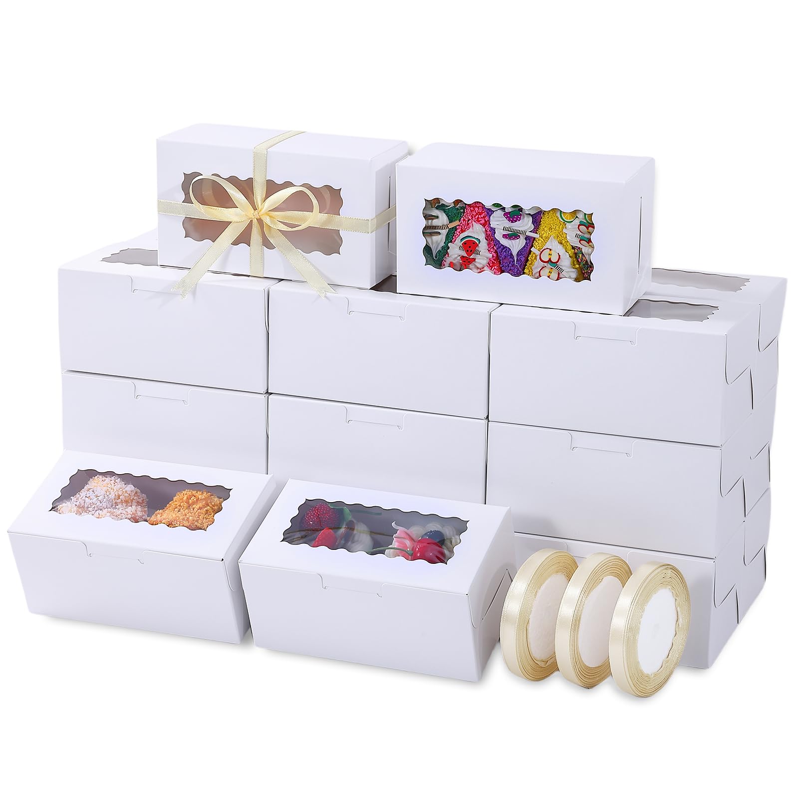 26 cajas blancas para galletas con ventana, cajas pequeñas de panadería de 4 x 4 x 2.5 pulgadas con 36 calcomanías, para mini past