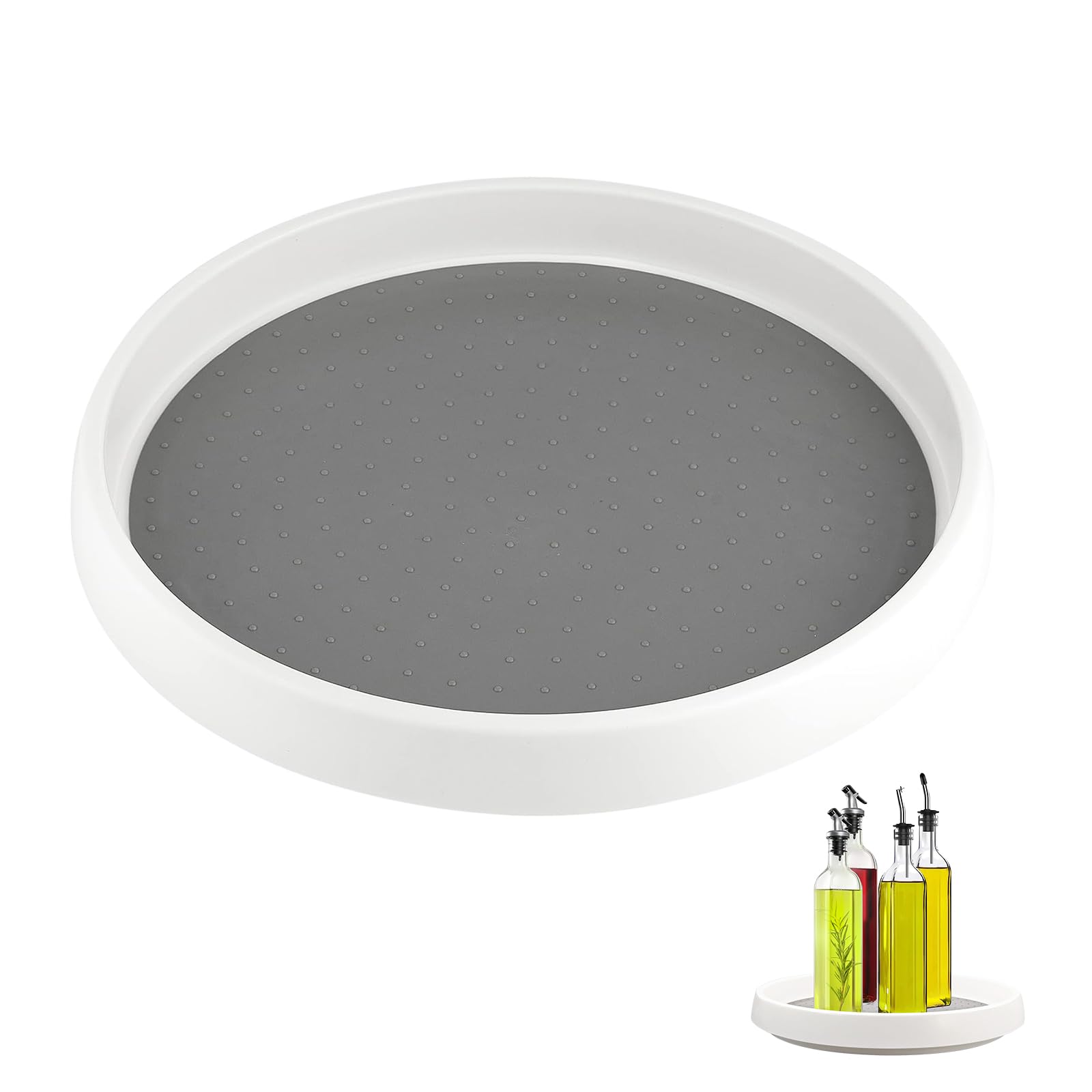 Soporte de aceite giratorio para encimera de cocina: Estante organizador de especias redondo en blanco y negro con rotación ajusta
