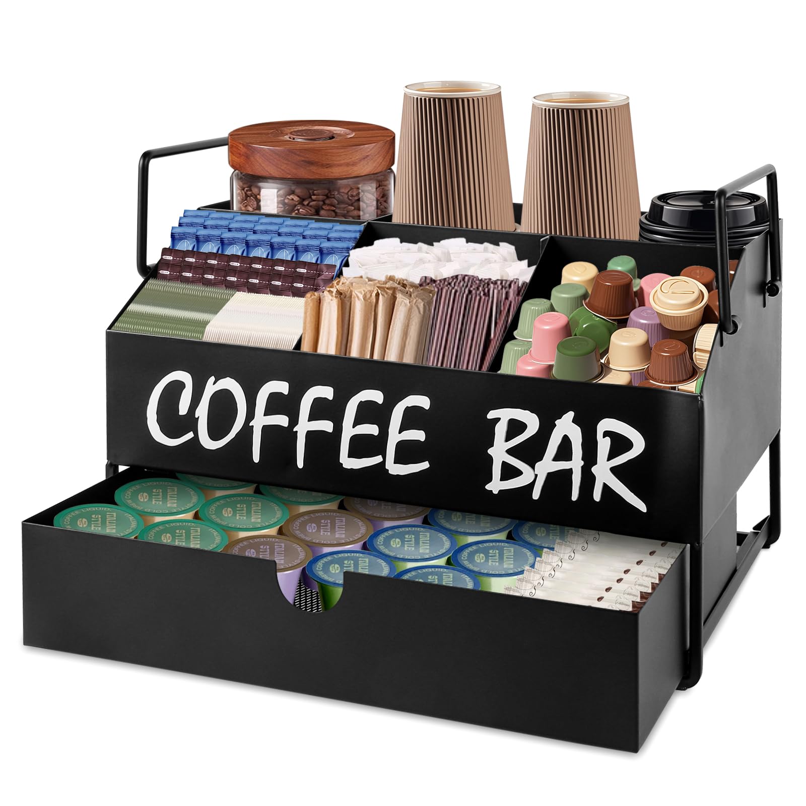 Organizador de accesorios de barra de café, estación de café de metal para encimera con cajón, soporte para cápsulas y organizador