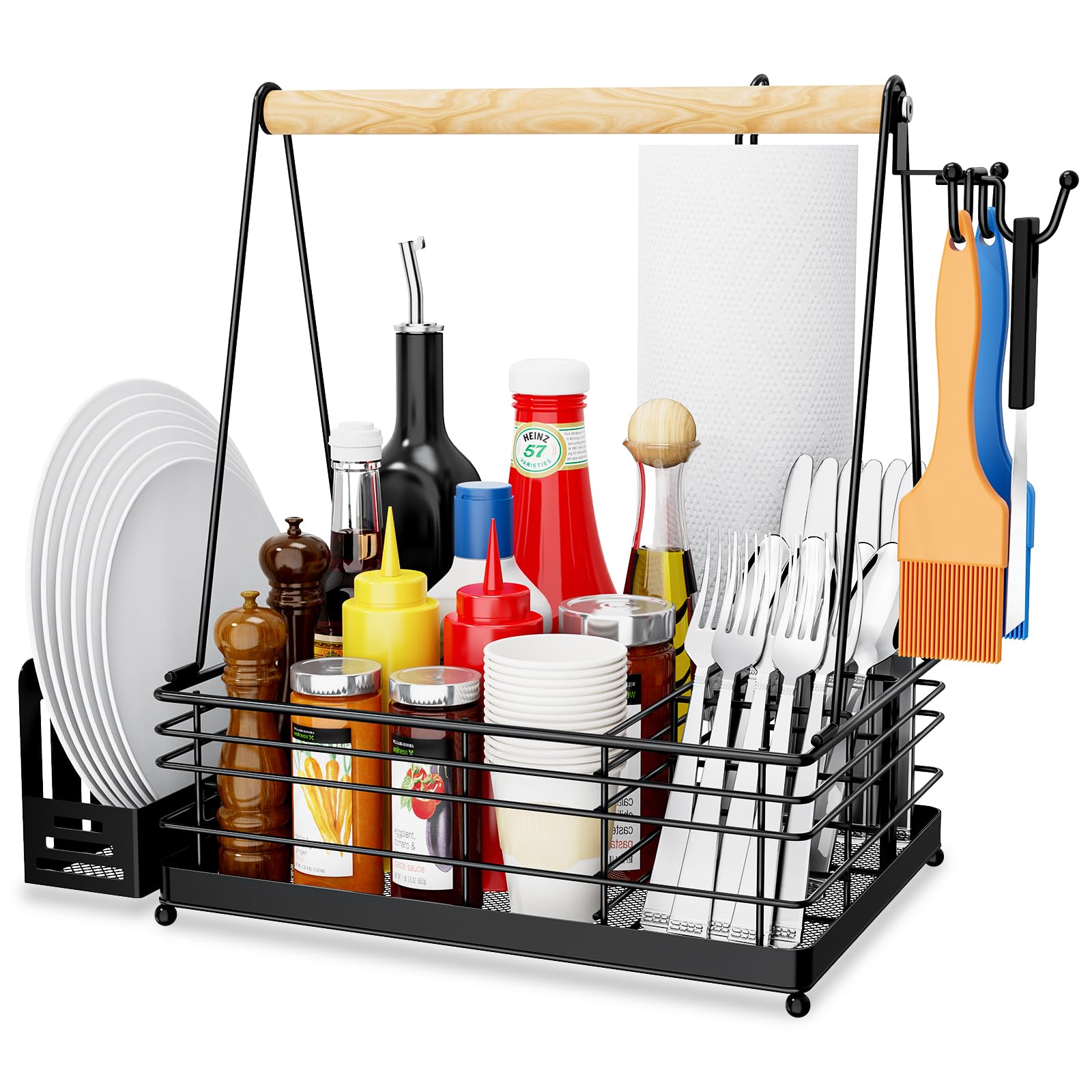 Geesta Grill Caddy – Organizador para barbacoa y picnic con toalla de papel y soportes magnéticos para herramientas, almacenamient