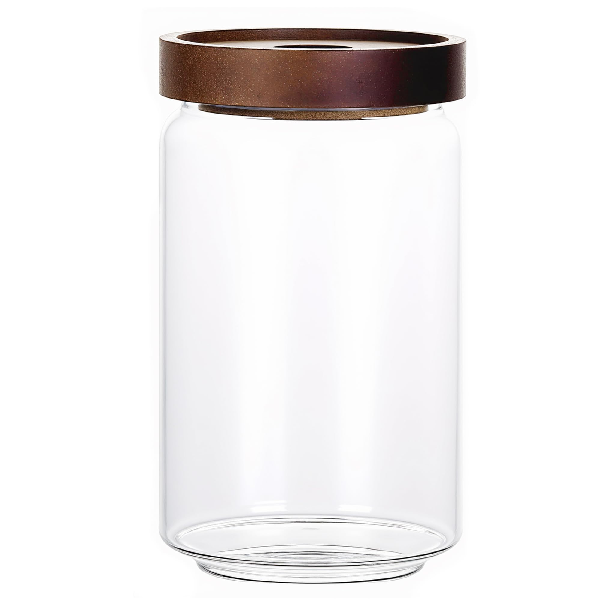 Contenedor de vidrio transparente de 24.3 fl oz/24 onzas con tapa de madera hermética apilable, moderno tarro decorativo para café