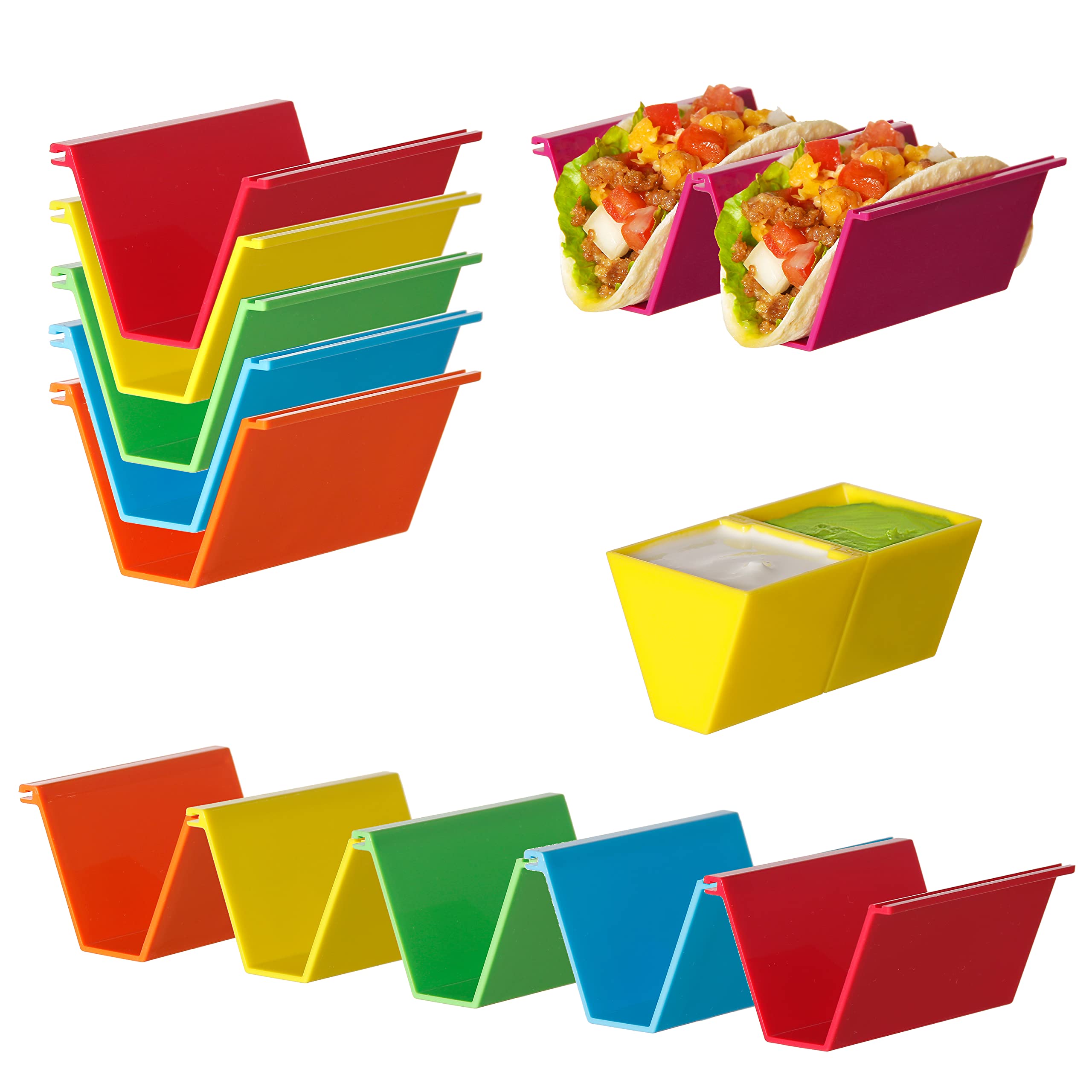 Coloridos soportes para tacos, juego de 12 con 2 platos de condimentos, platos de bandeja de tacos para regalos y accesorios de ba