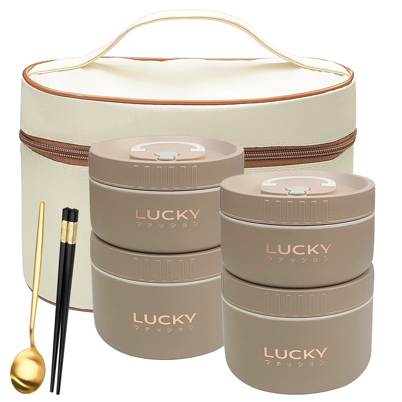 Juego de contenedores de almuerzo portátiles aislados, caja Bento para adultos con bolsa de almuerzo aislada, 4 contenedores térmi