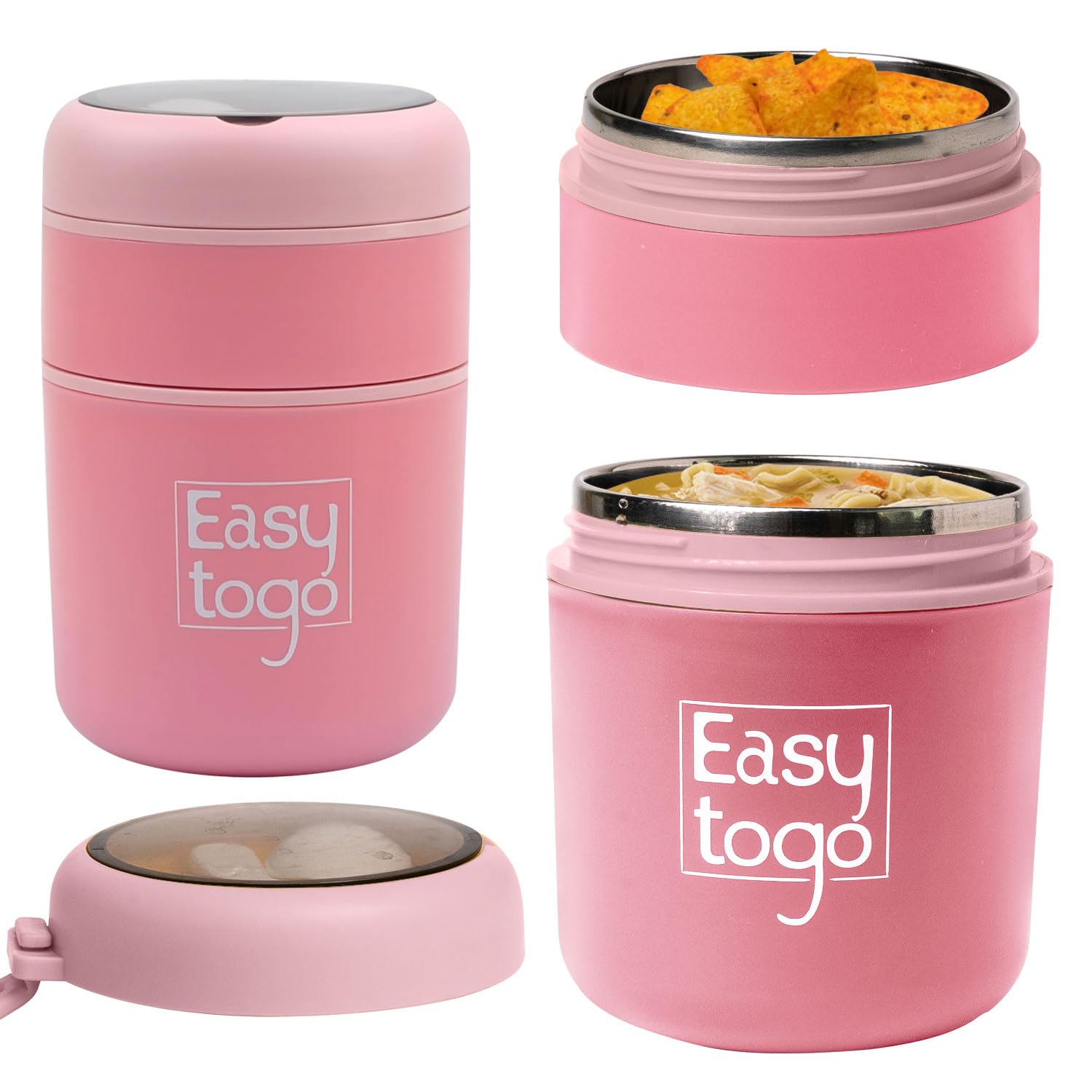 Lonchera de acero inoxidable de 23.7 fl oz con cuchara, asa, recipiente pequeño a prueba de fugas para aperitivos, dieta y aliment